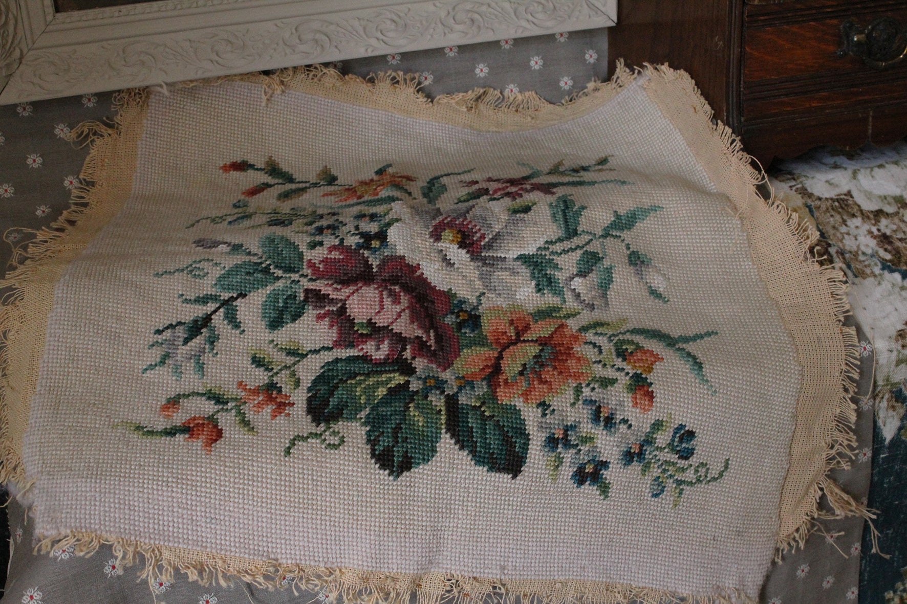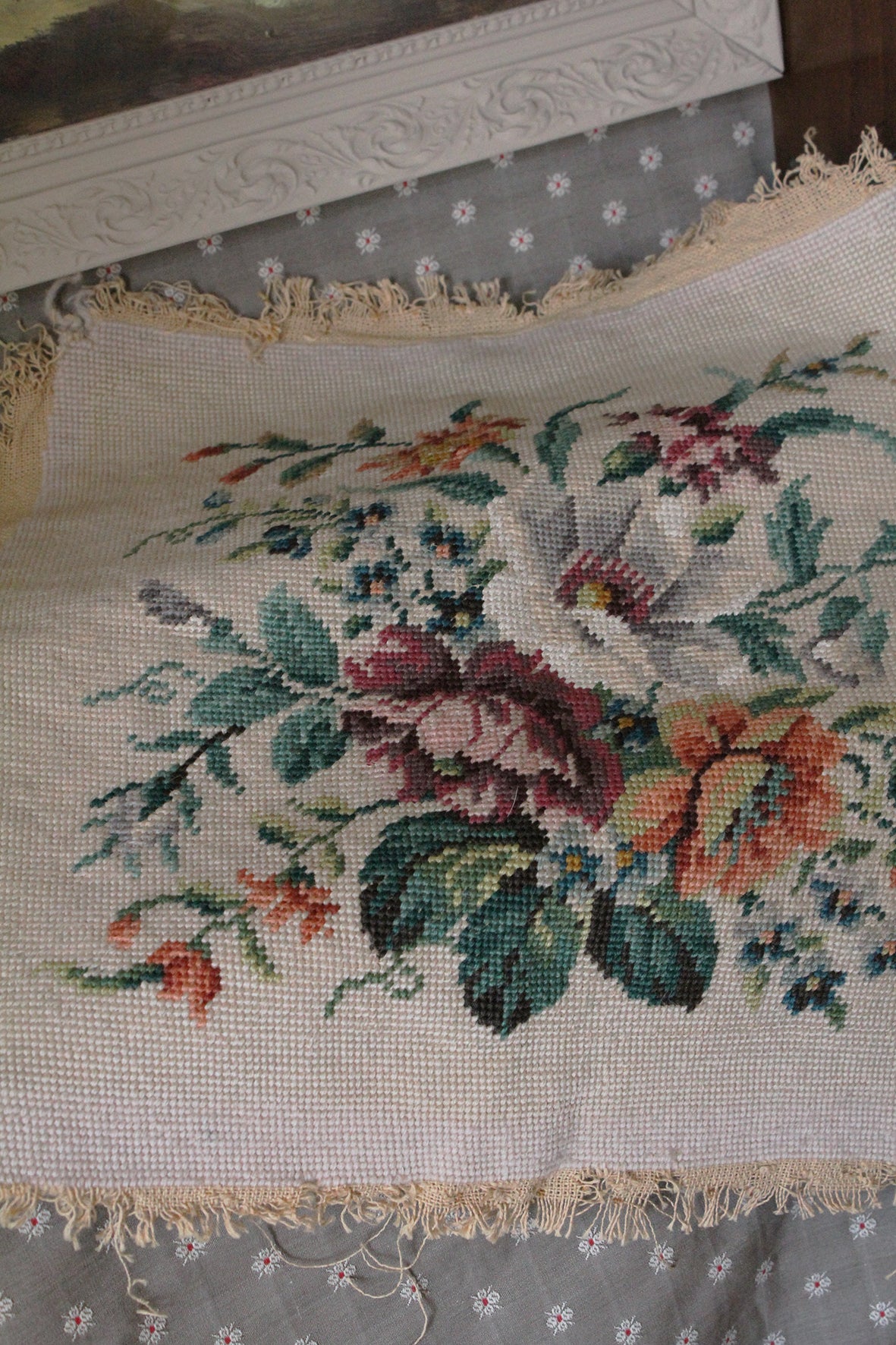 Exquisite Old Floral Reclaimed Needlepoint - No.4