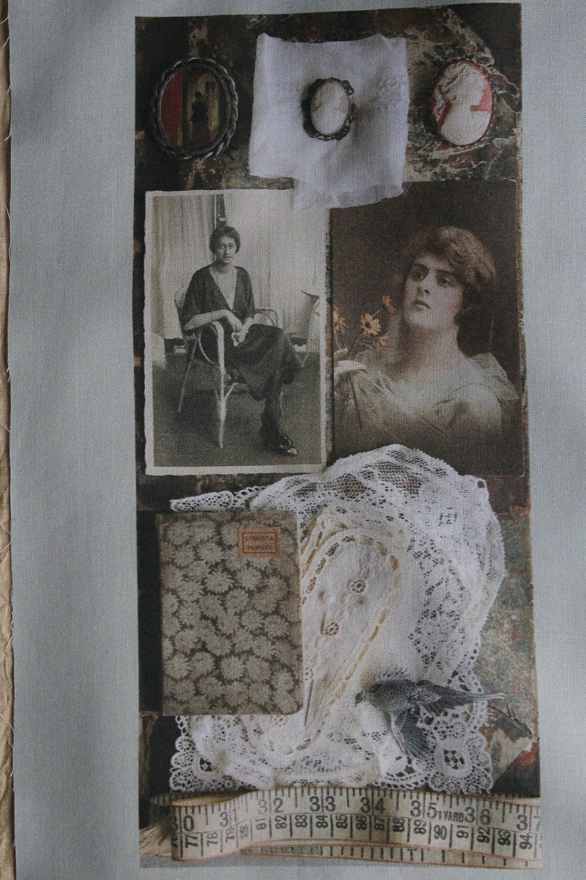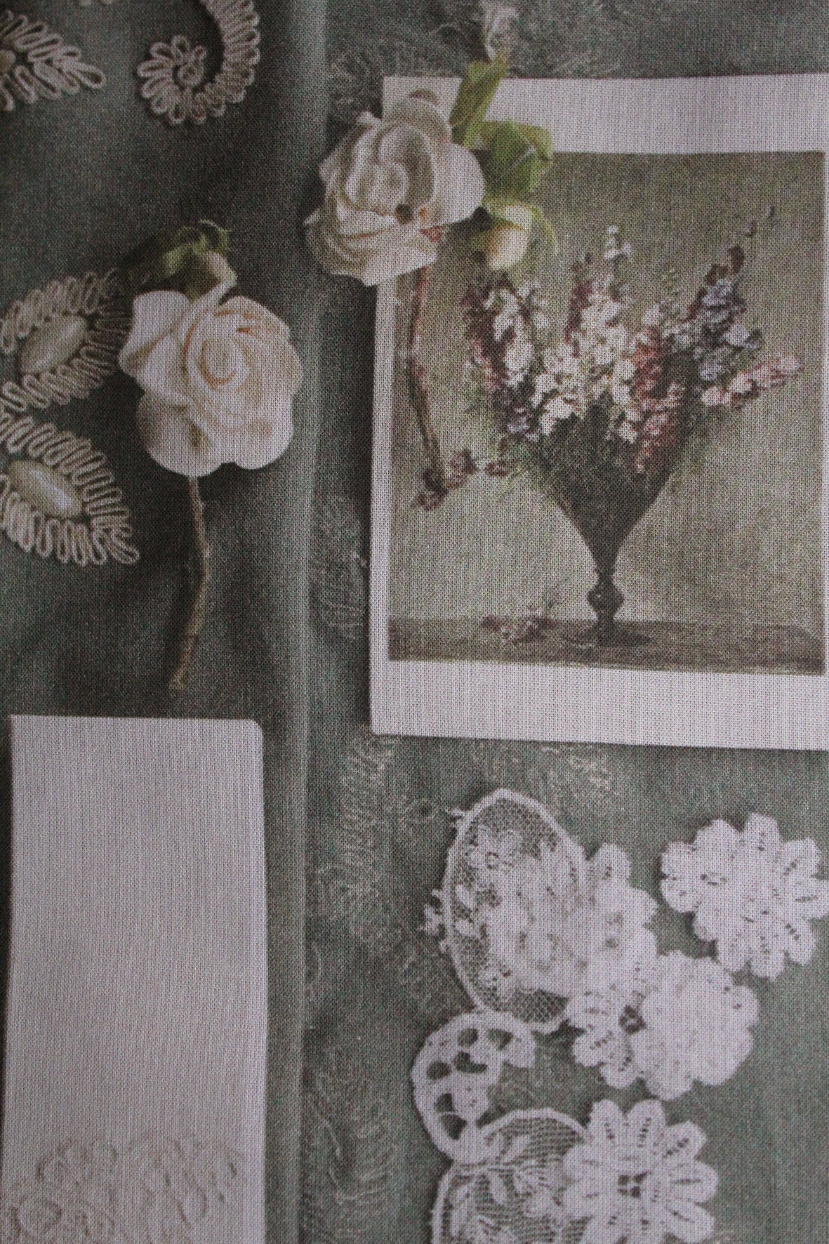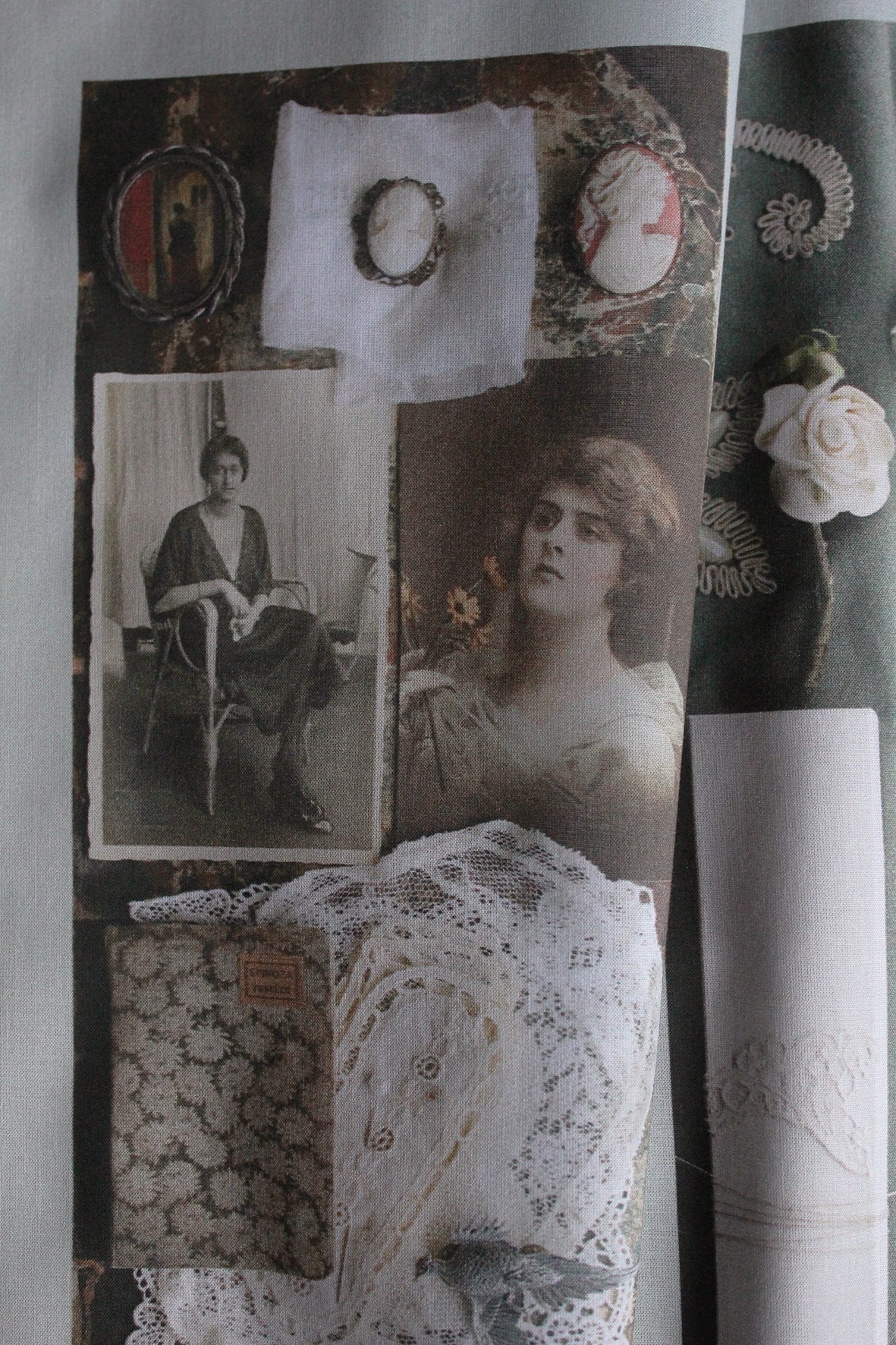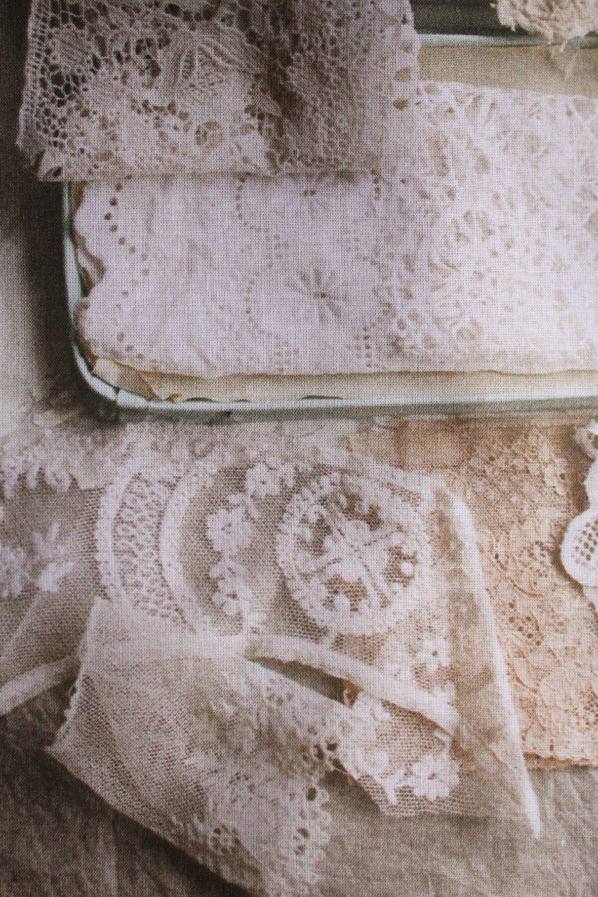 A lovely large panel of cotton lawn that has been digitally printed. The imagery has been taken from photographs from a past Shop Window flat lay. Gorgeous details of old found items to inspire. I have always wanted to do this myself, where I have my photographs printed and then work into them with applique and embroidery. I hope you love the idea too.