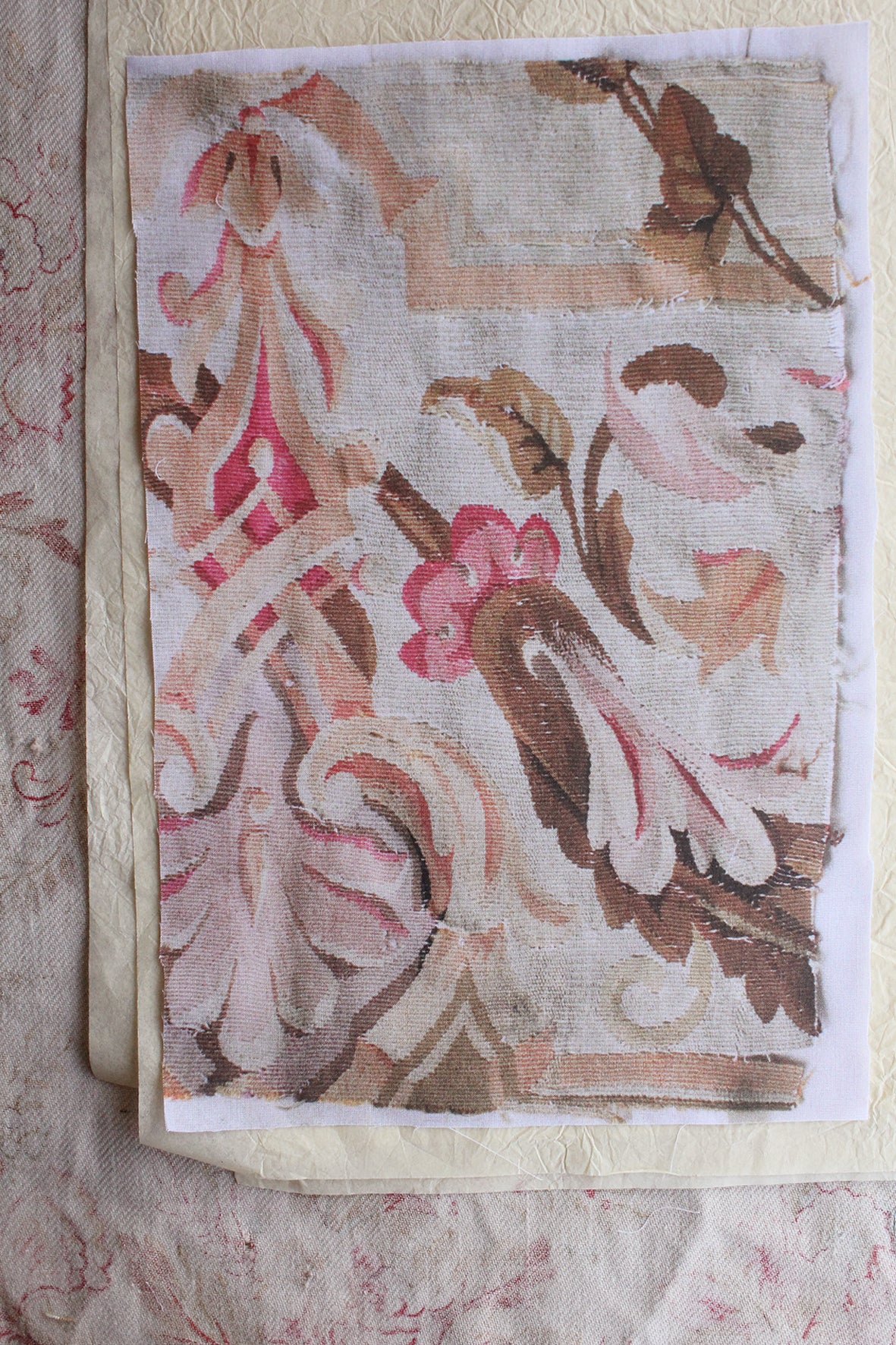 A lovely small panel of cotton lawn that has been digitally printed. The imagery is from a studio photograph of an old French tapestry that stayed here in the studio for a while.