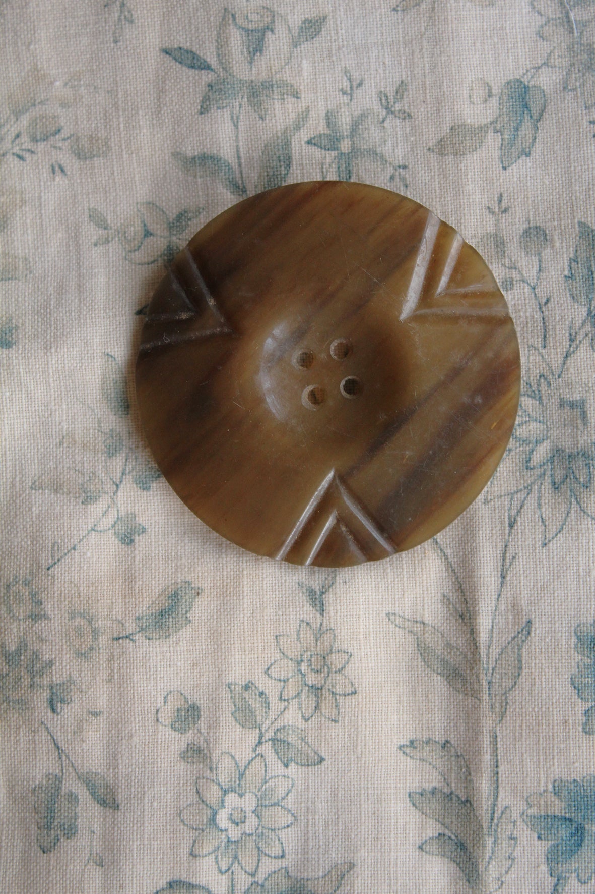 A lovely large coat button in a thin formed early plastic/resin.