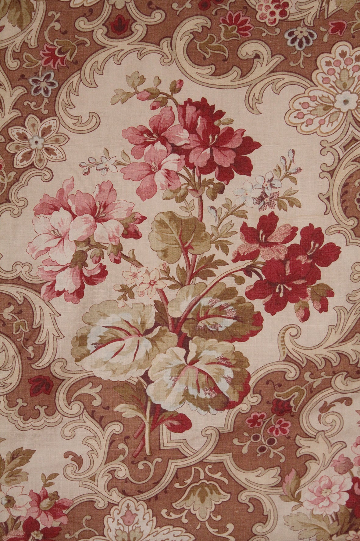 Large Panel of Antique French Printed Cotton - Geranium