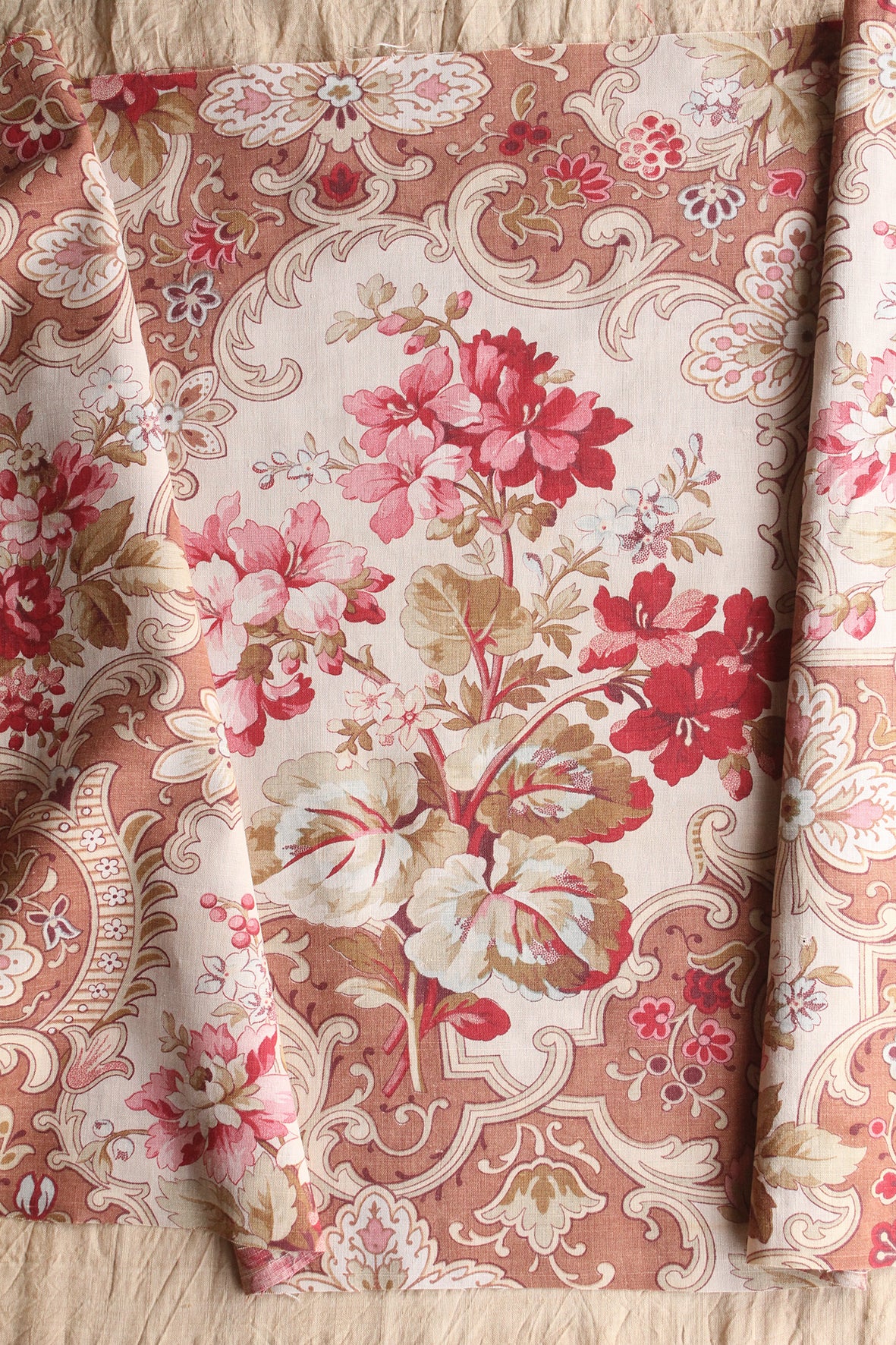 Narrow Panel of Antique French Printed Cotton - Geranium