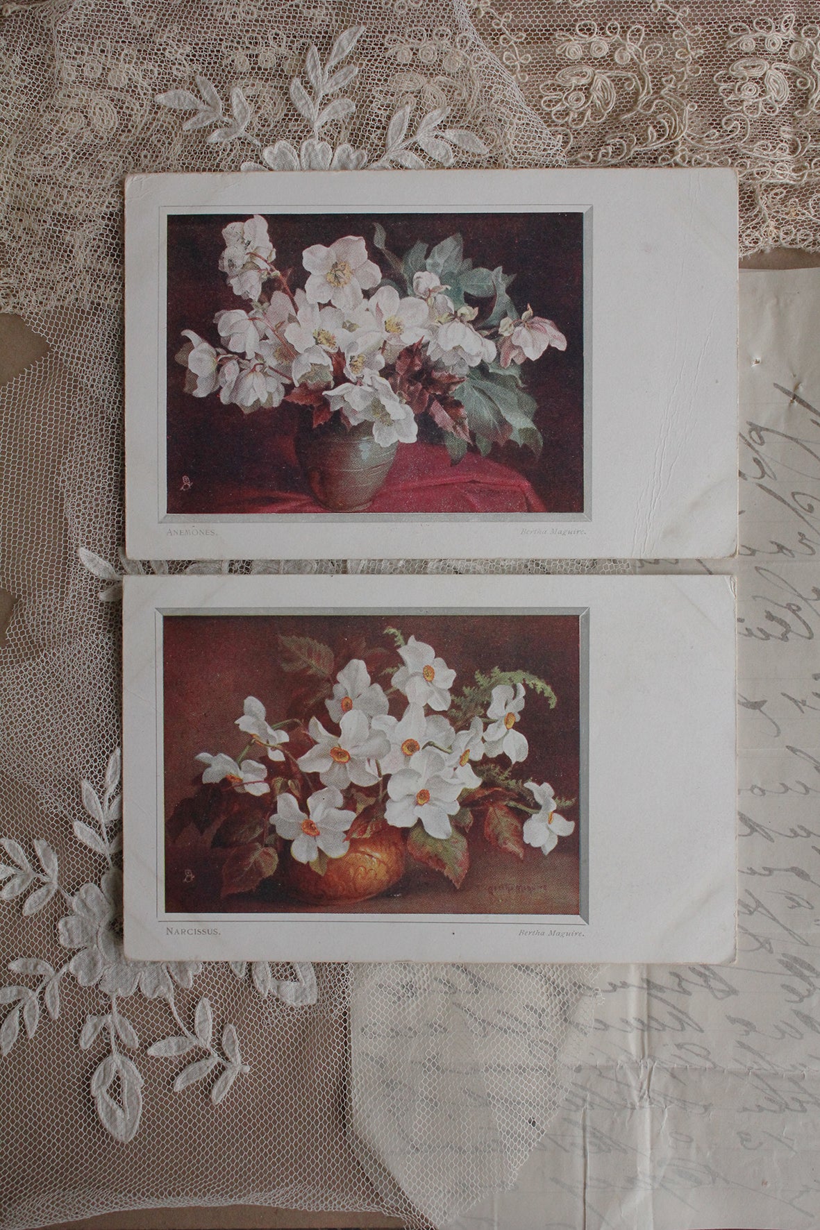 Old Collectable Postcards - Narcissus & Anemones
