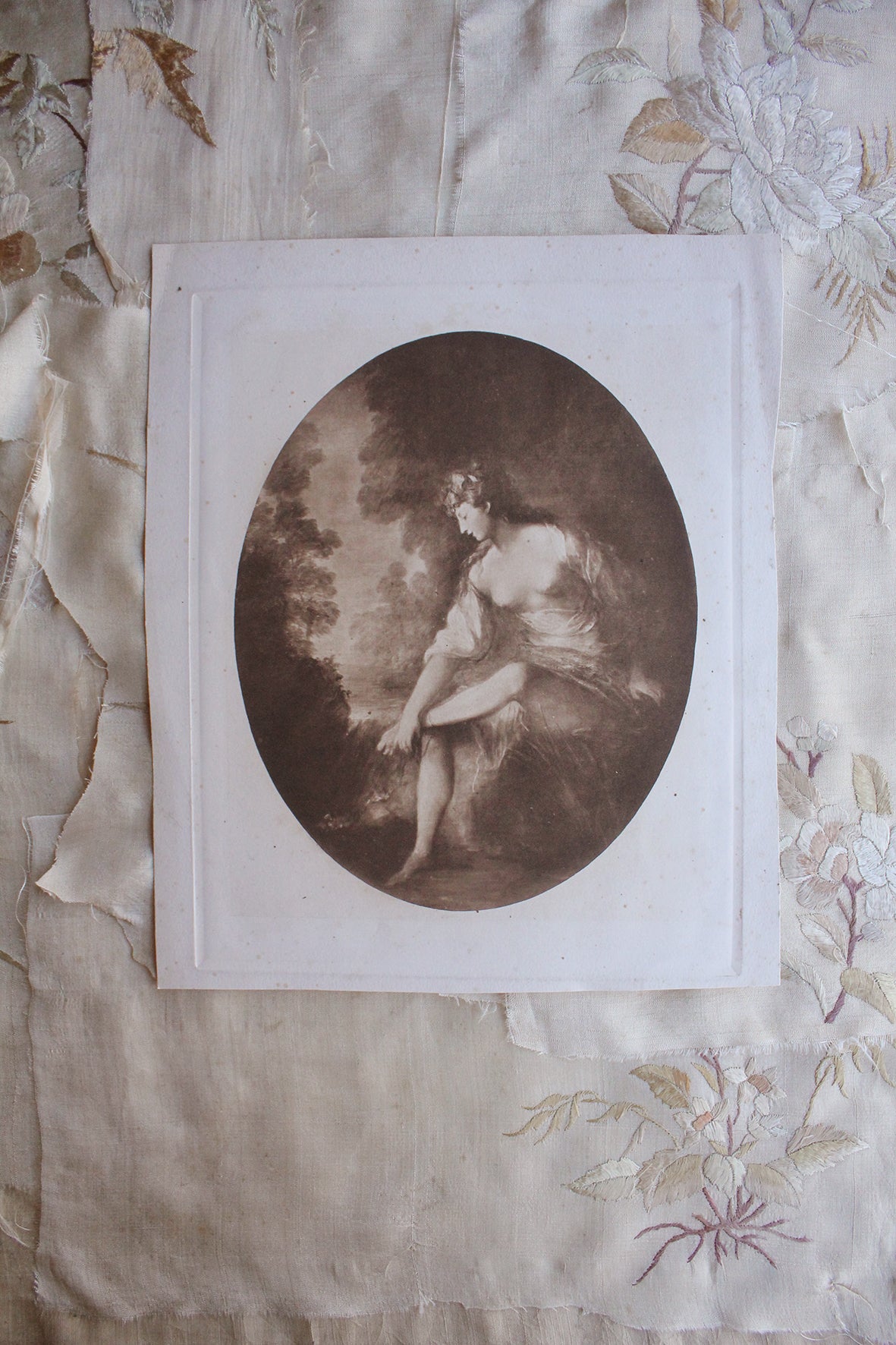 A beautiful old engraving from a painting depicting Musidora, originally painted by the artist Thomas Gainsborough between 1780 and 1788.