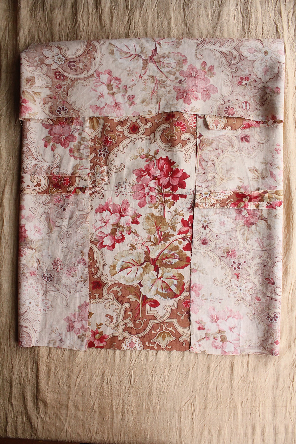 A very beautiful antique cotton panel screen printed in tones of faded terracotta, pale cream, pins and soft mustard and sage greens. Reclaimed from an old eiderdown. This panel has been seamed and the pattern joined, well I must add. If you love old seaming etc then this panel will excite you.