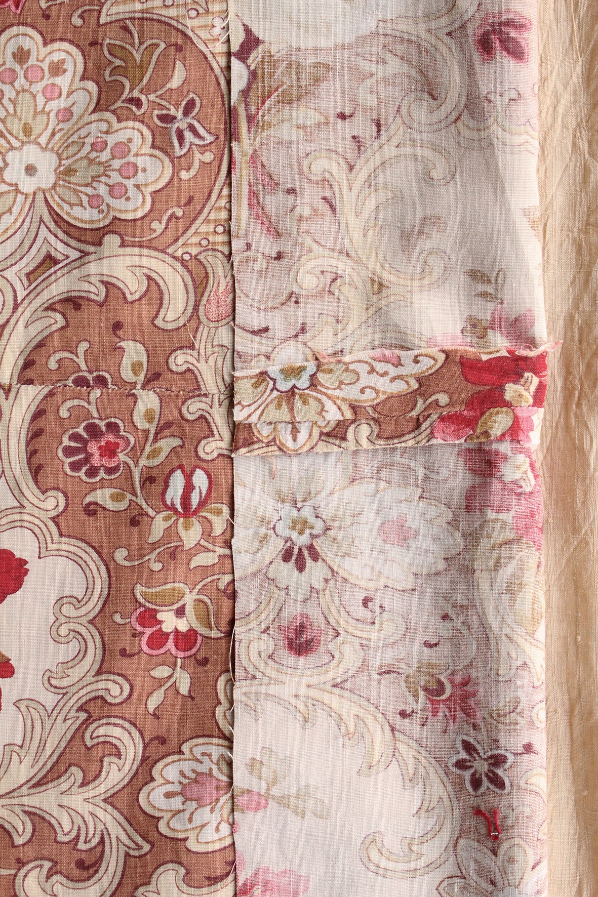 Panel of Antique French Printed Cotton With Seams - Geranium - Panel 2