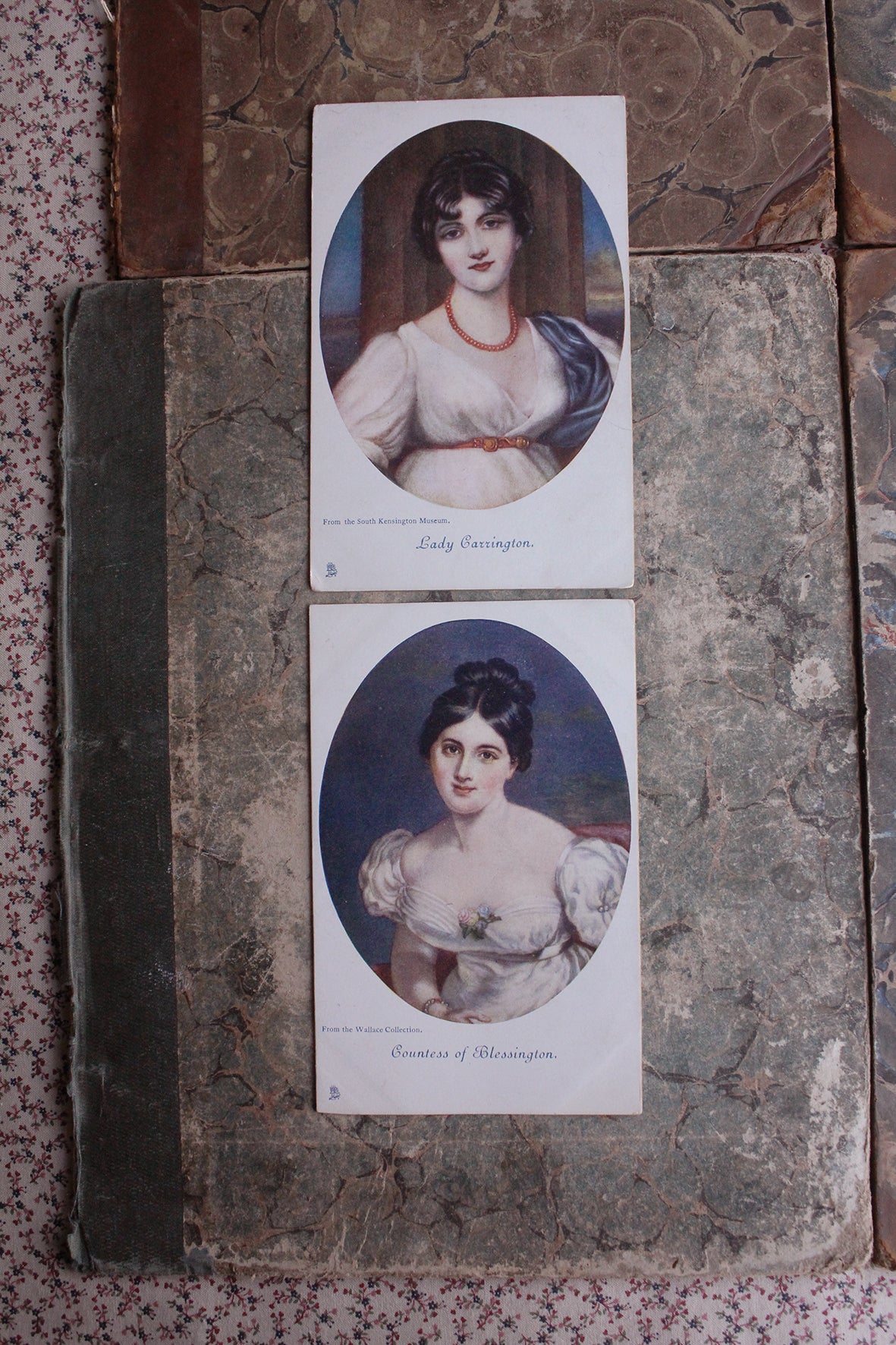 This collection is by the printer Raphael Tuck. Produced in the early 1900's under the title of "The Old Print" series. There's still hints of gilding to the edge too to make them even more precious.