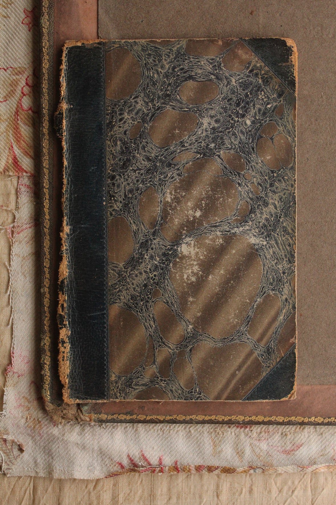 I adore these old book covers purely for inspiration and the sense of history. The way the paper and marble has worn over years is exquisite. Only time and use can create such a beautiful patina.