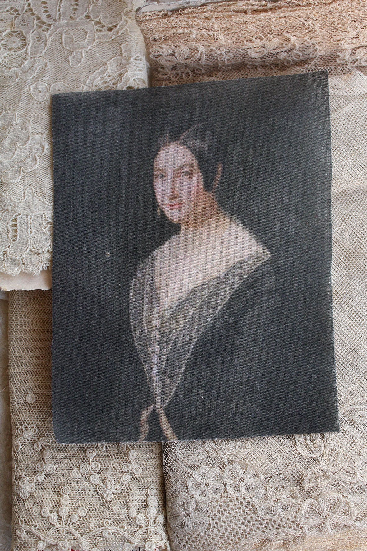 A beautiful copy of an old painting of an unknown lady, that has been reproduced onto a lovely cotton lawn.