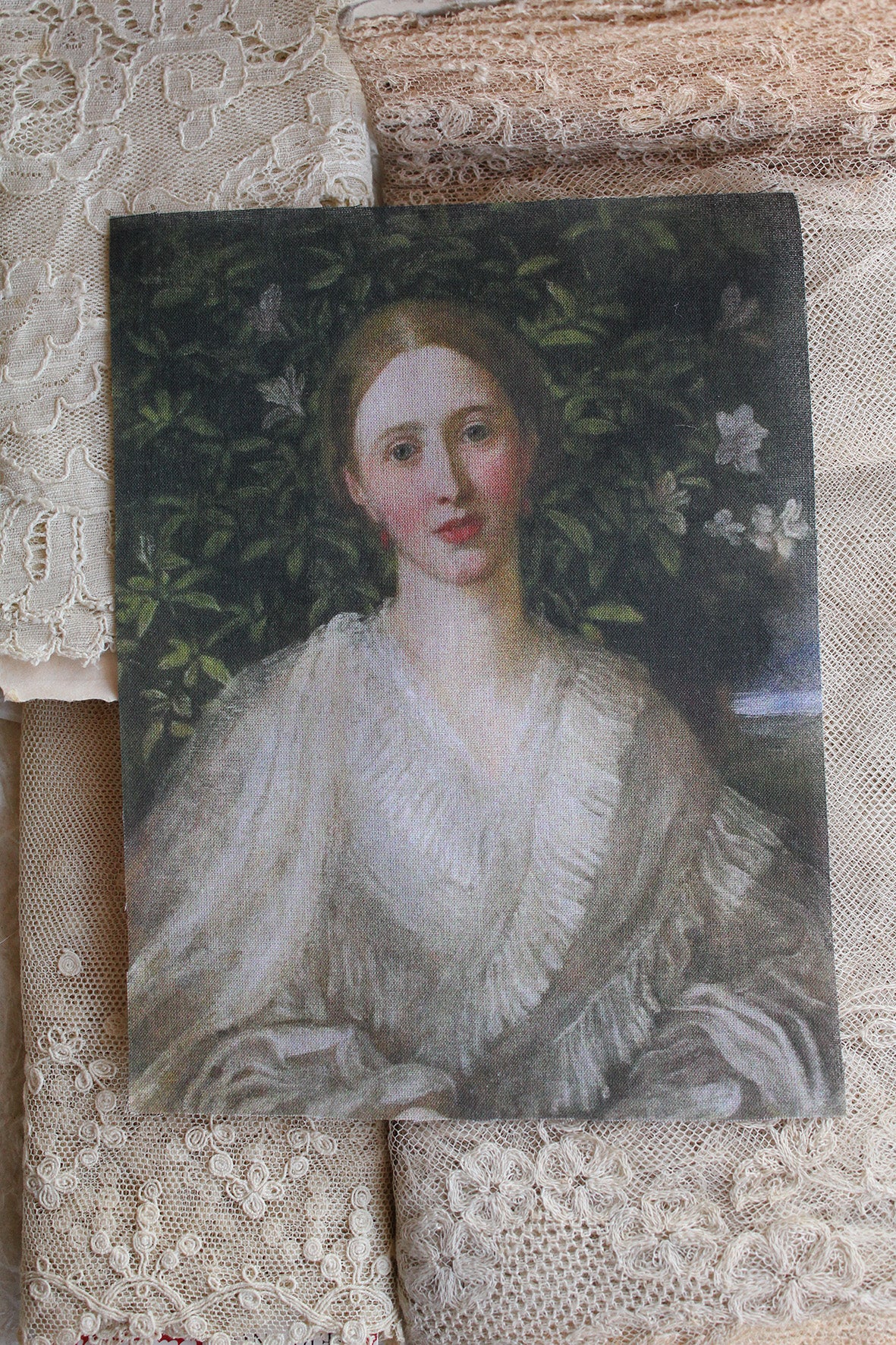 A beautiful copy of an old painting titled Helen Rose Huth painted George Frederic Watts that has been reproduced onto a lovely cotton lawn.