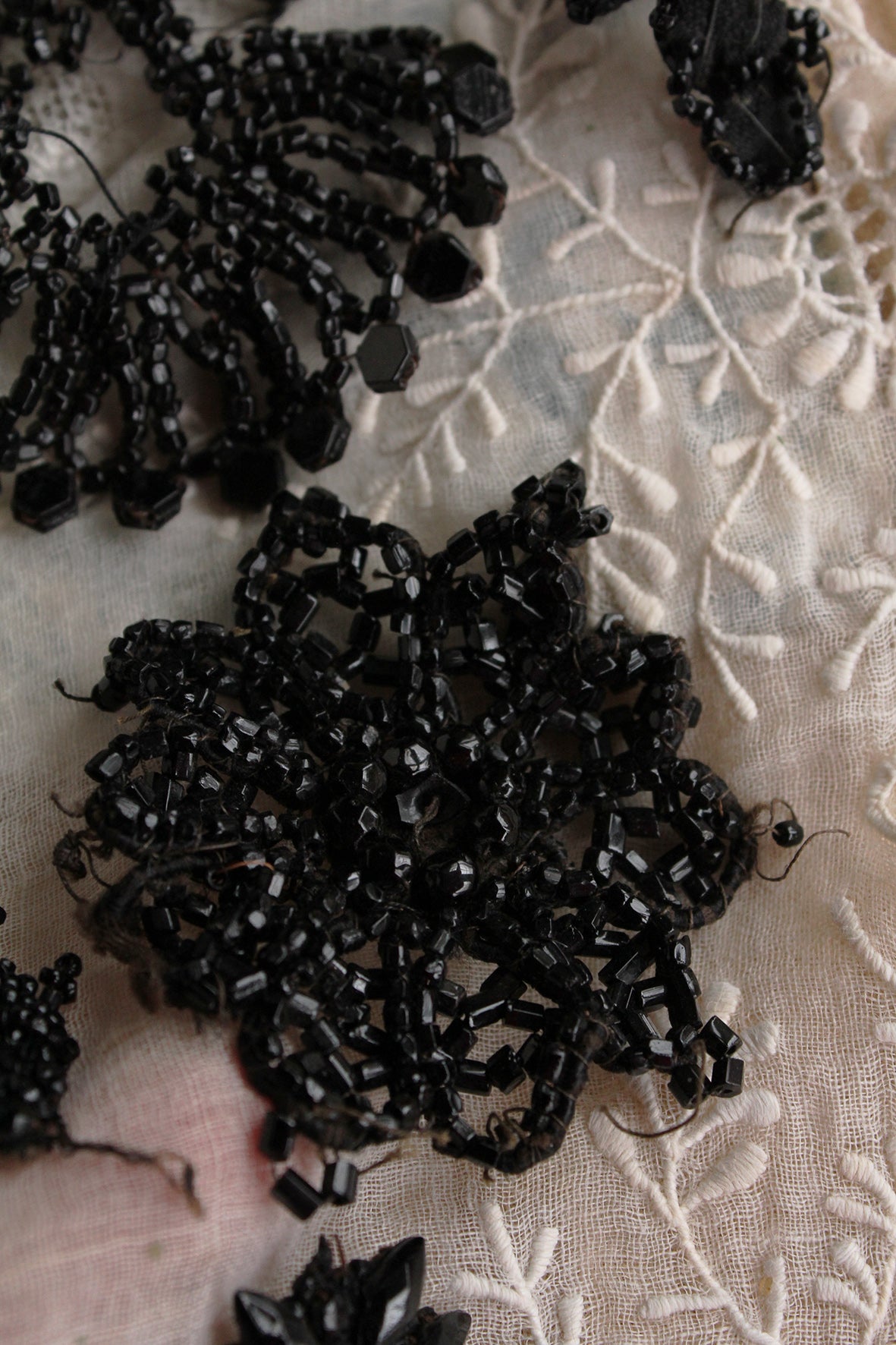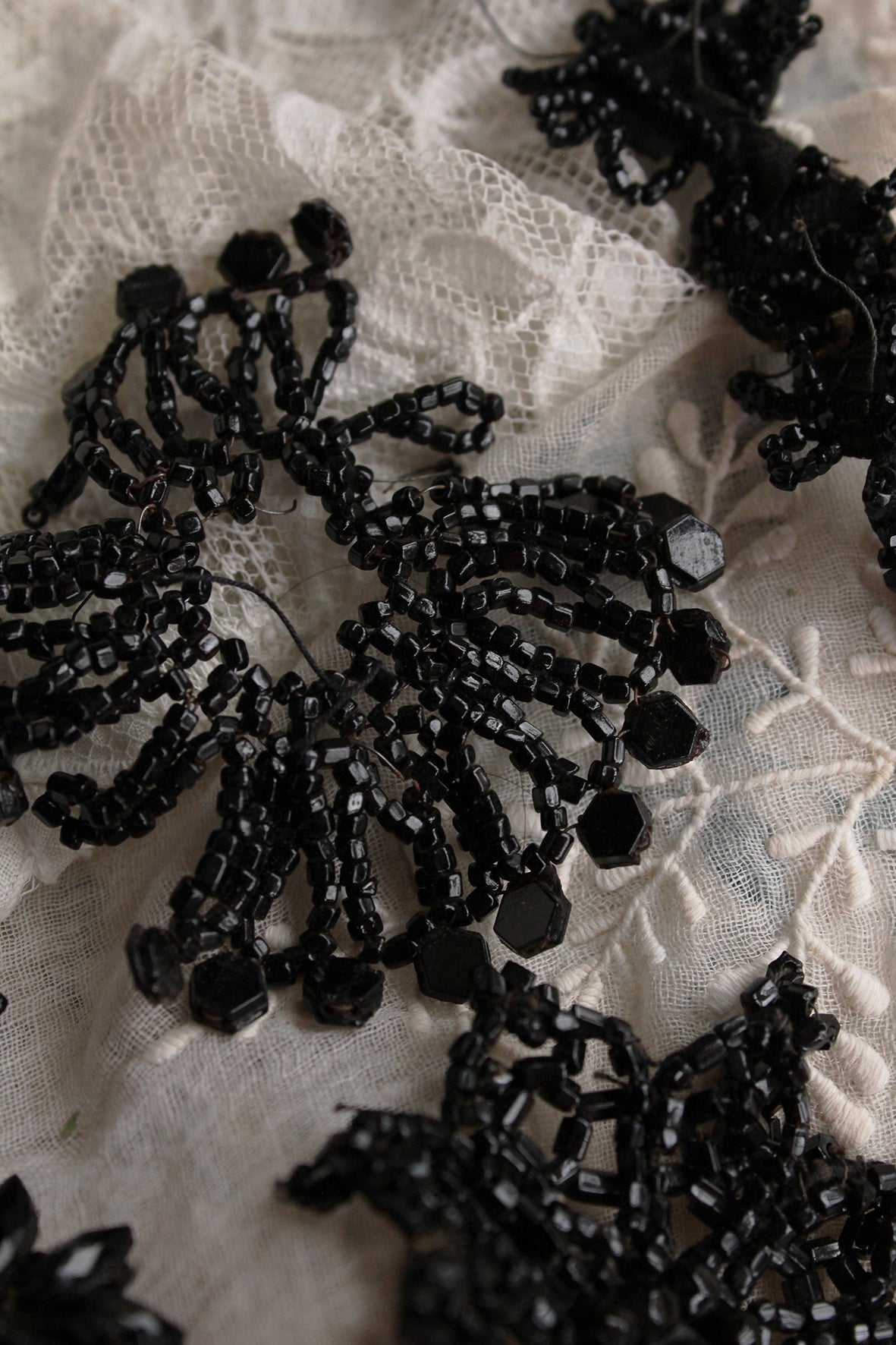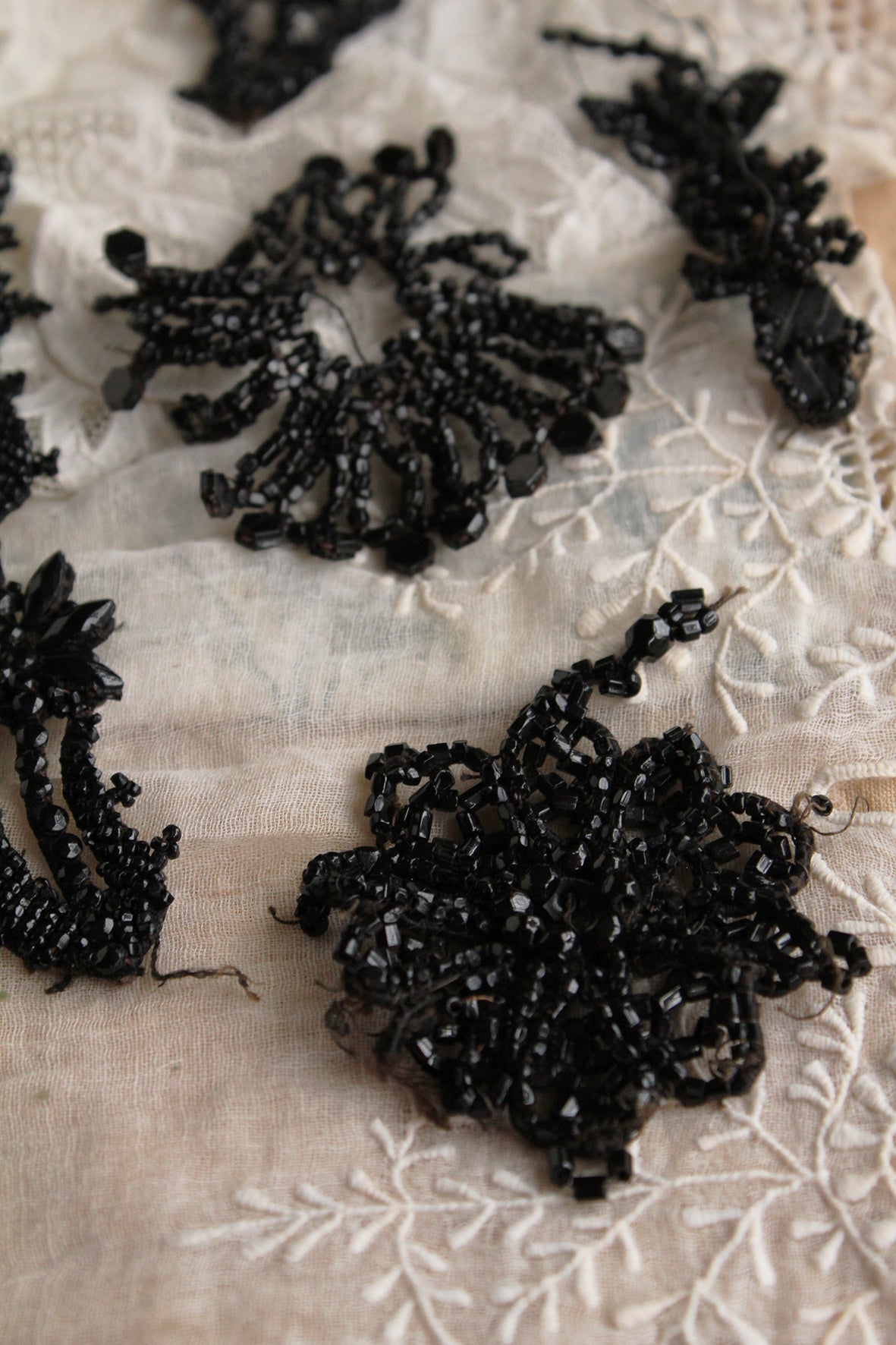 Reclaimed Victorian Hand Stitched Beaded Black Motifs - Fragments