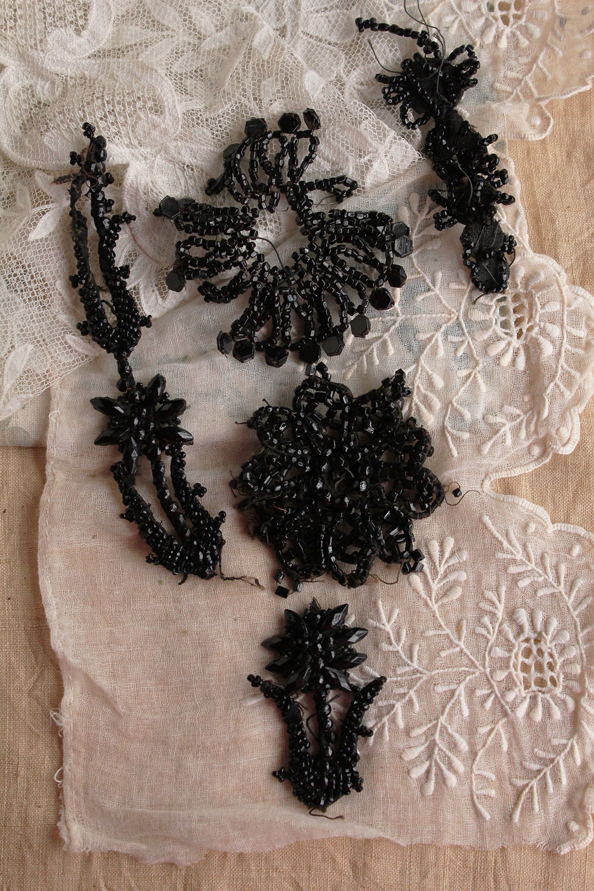 Victorian. They would have been aiding the adornment of the most exquisitely detailed mourning gown. Beautiful to just study and own and keep wrapped in tissue or use within a project.