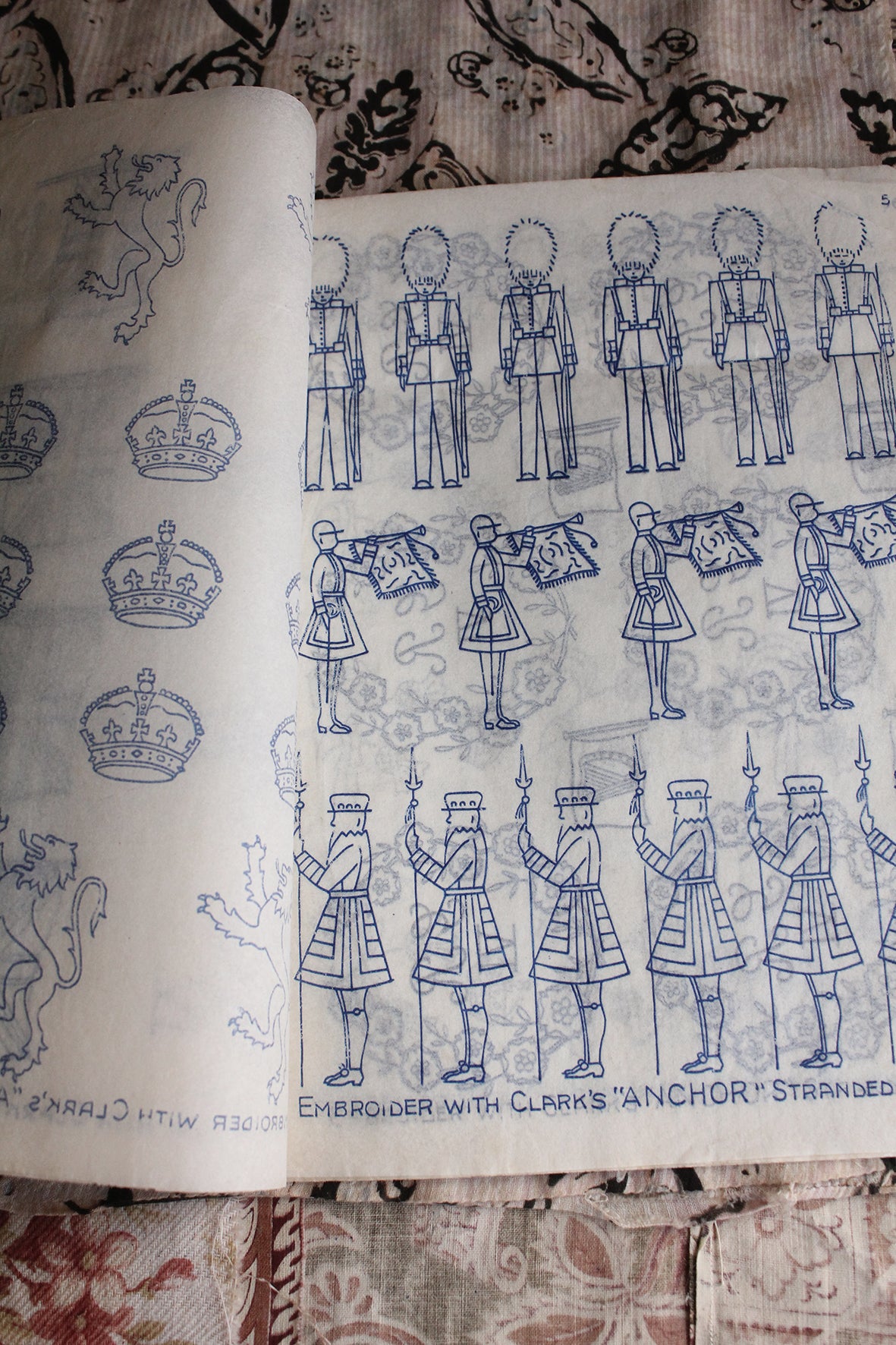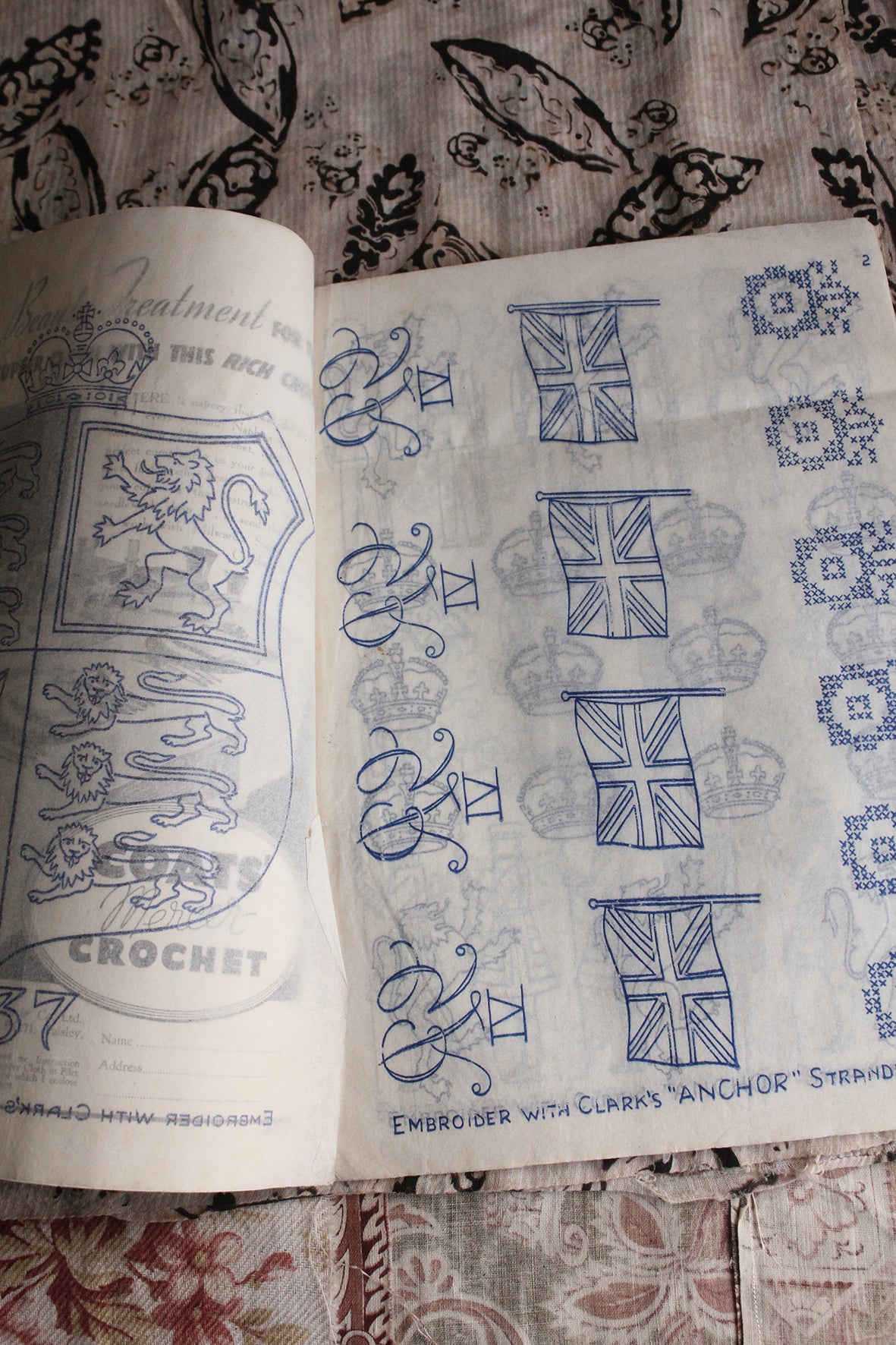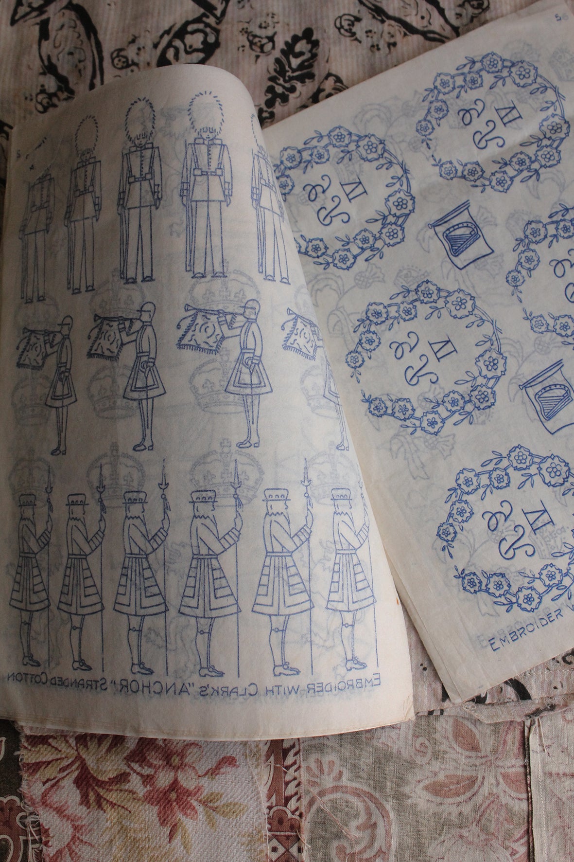 Royal Embroidery Gift Book produced by Home Journal in 1937 produced by Anchor to use with their embroidery silks. The little magazine is filled with lots of Royal themed transfers that are still active.. Simply iron down onto a linen (or fabric of choice) and embroider away in your happy place.