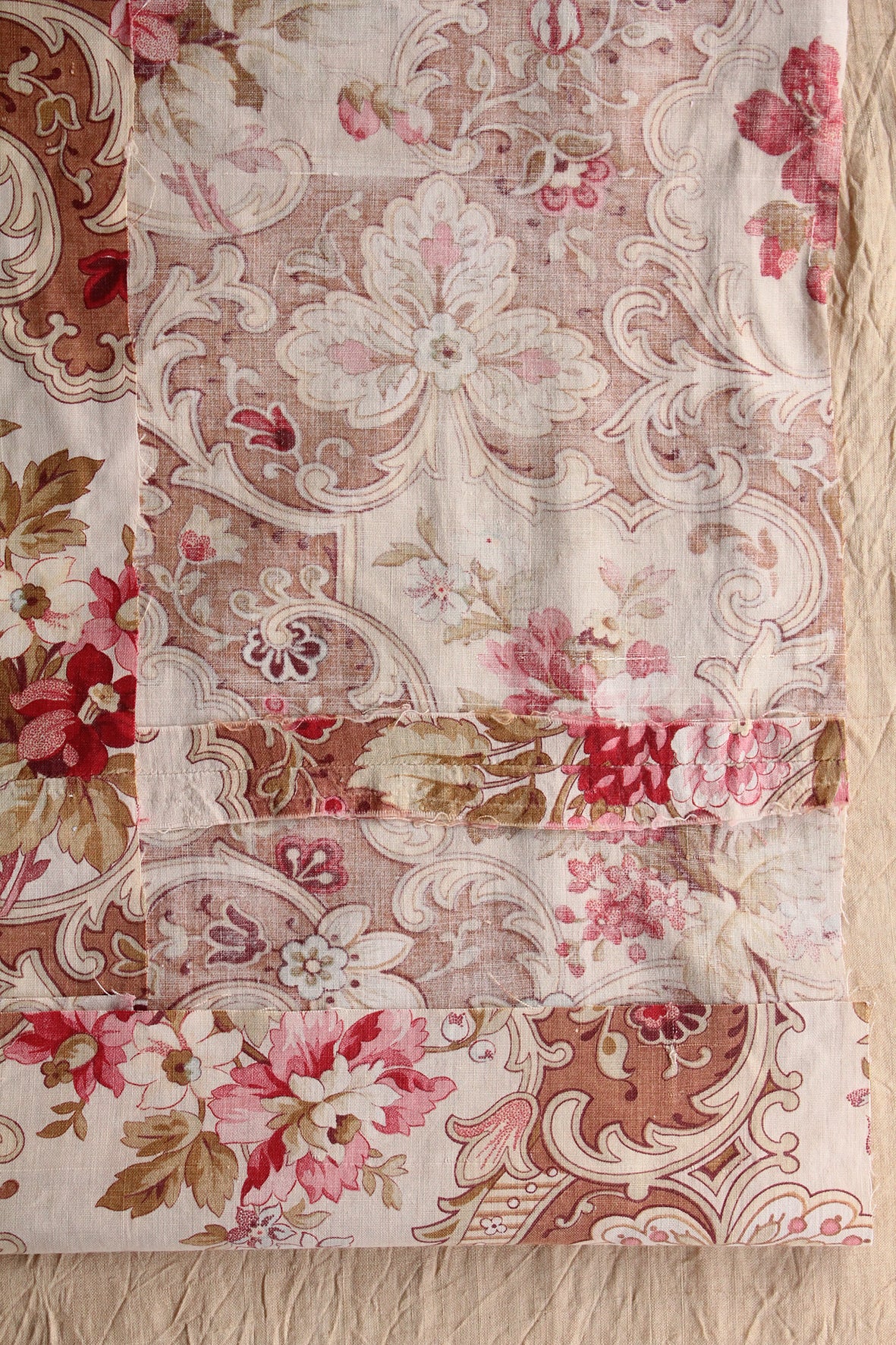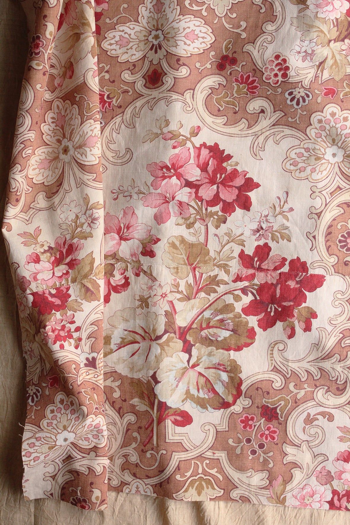 Panel of Antique French Printed Cotton With Seams - Geranium - Panel 1