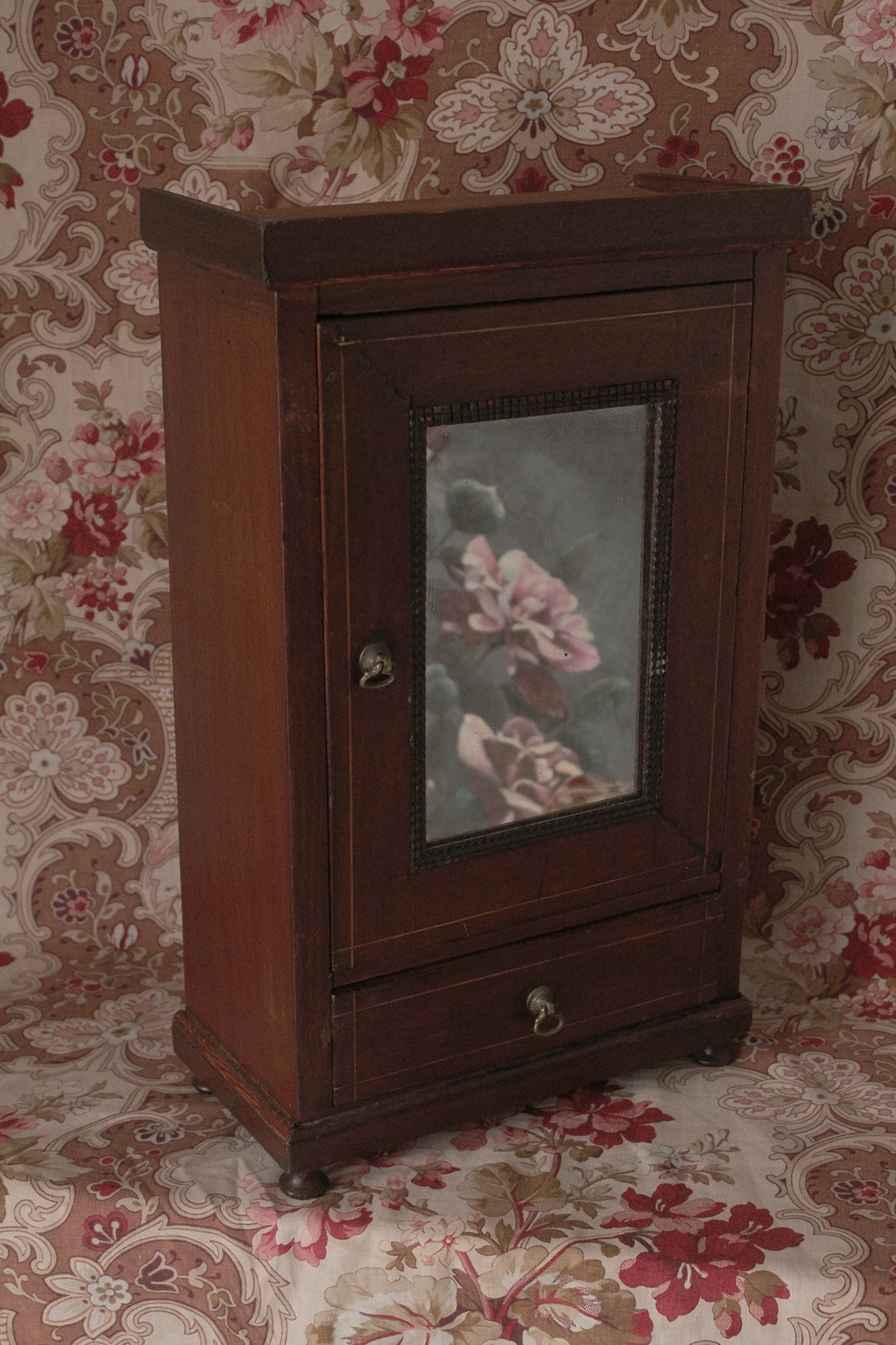 A lovely old cupboard perfest for placing those little collections for your sewing room maybe as a spice cupboard in your kitchen or a string and ribbon cupboard in your garden shed.....