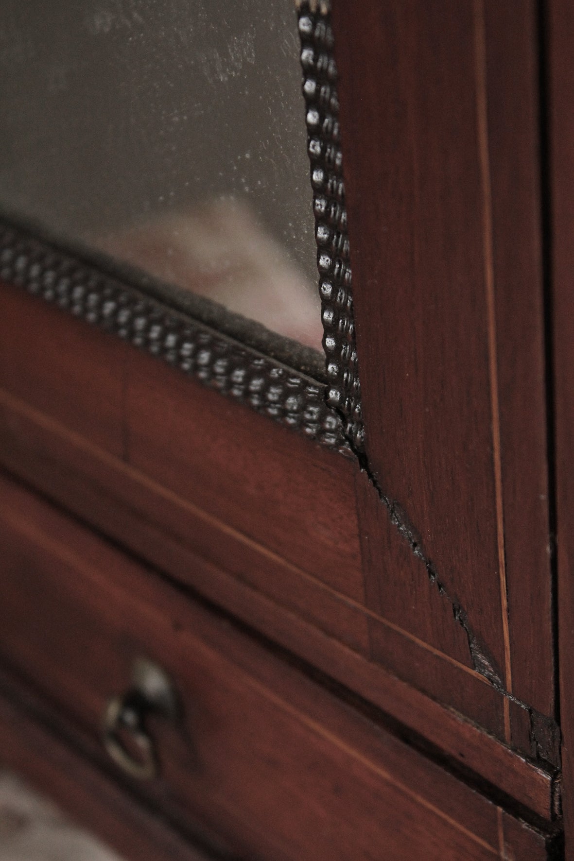 All in sound structural condition, there is a tiny single worm whole in the drawer of the cupboard just above the handle which has been treated. Still has original feet.