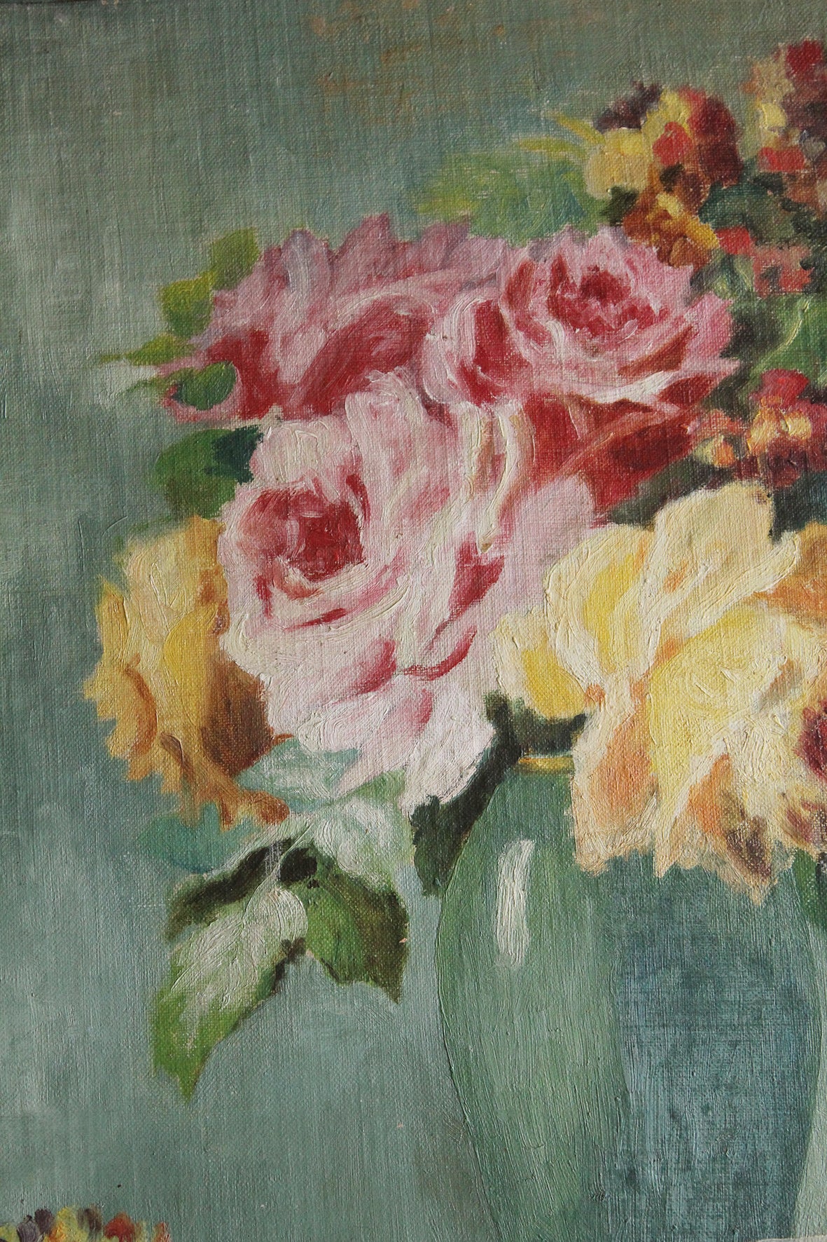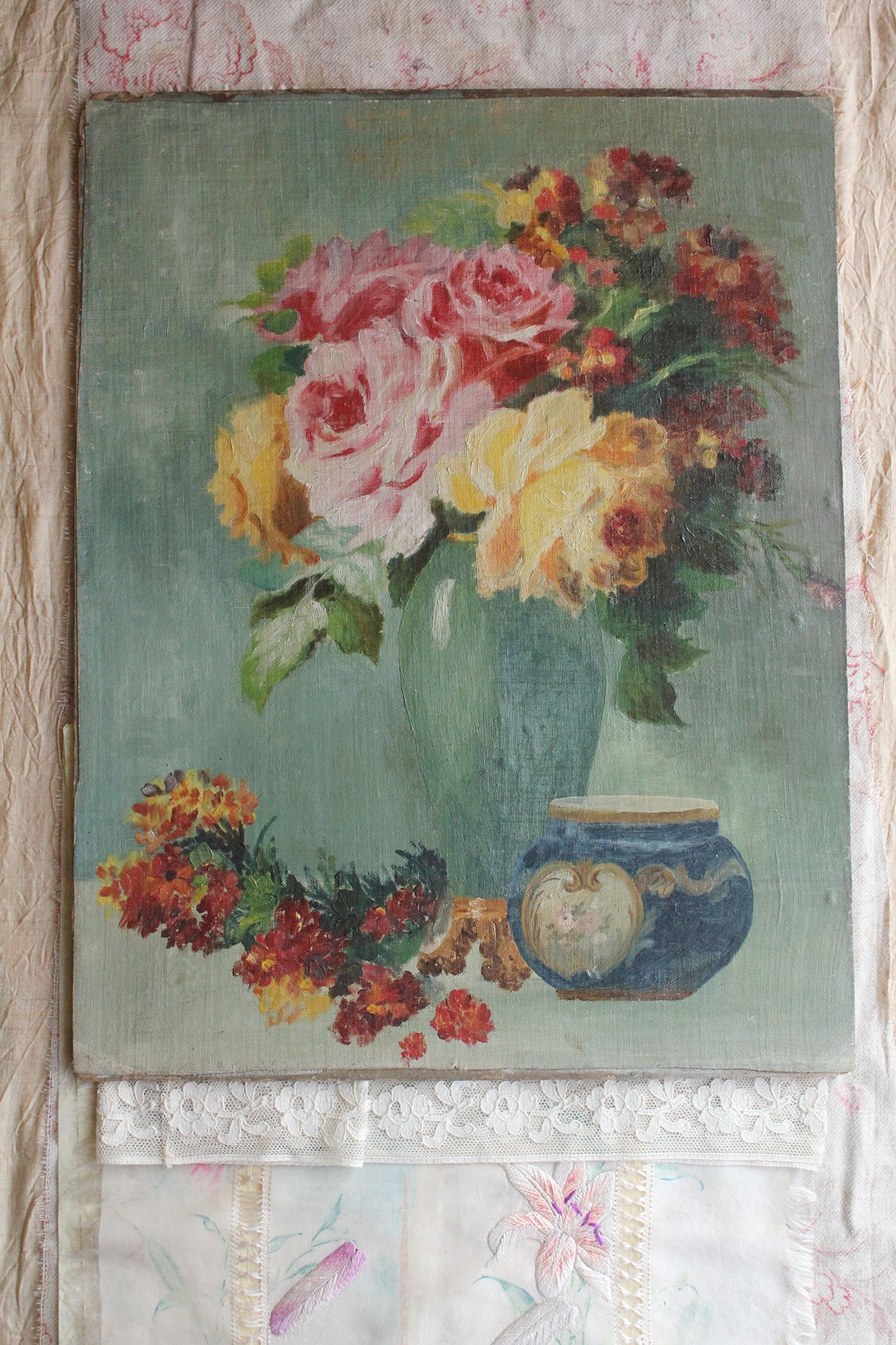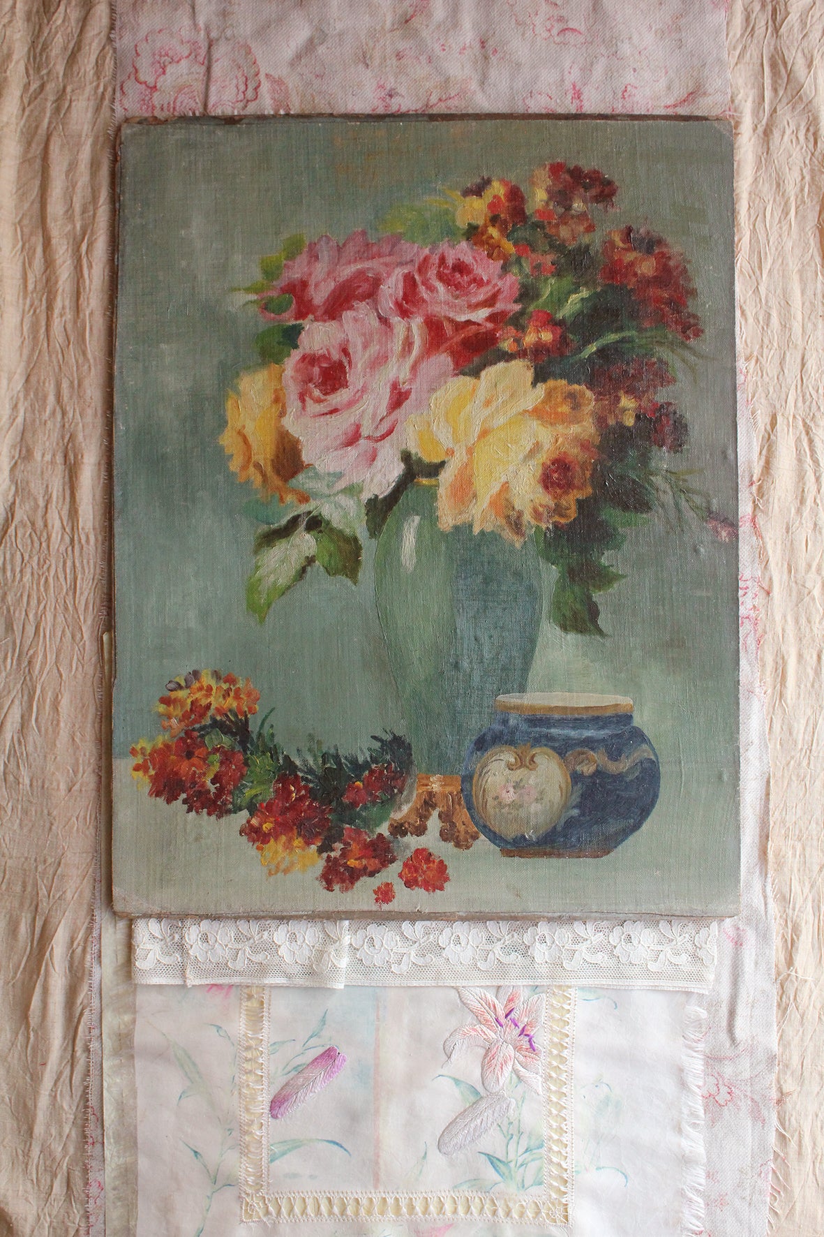 Thirties Reclaimed Floral Oil Painting - Roses & Still Life