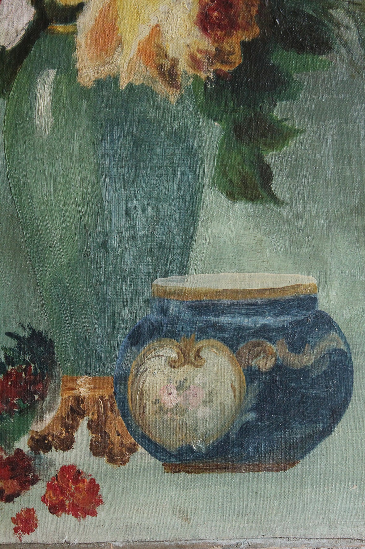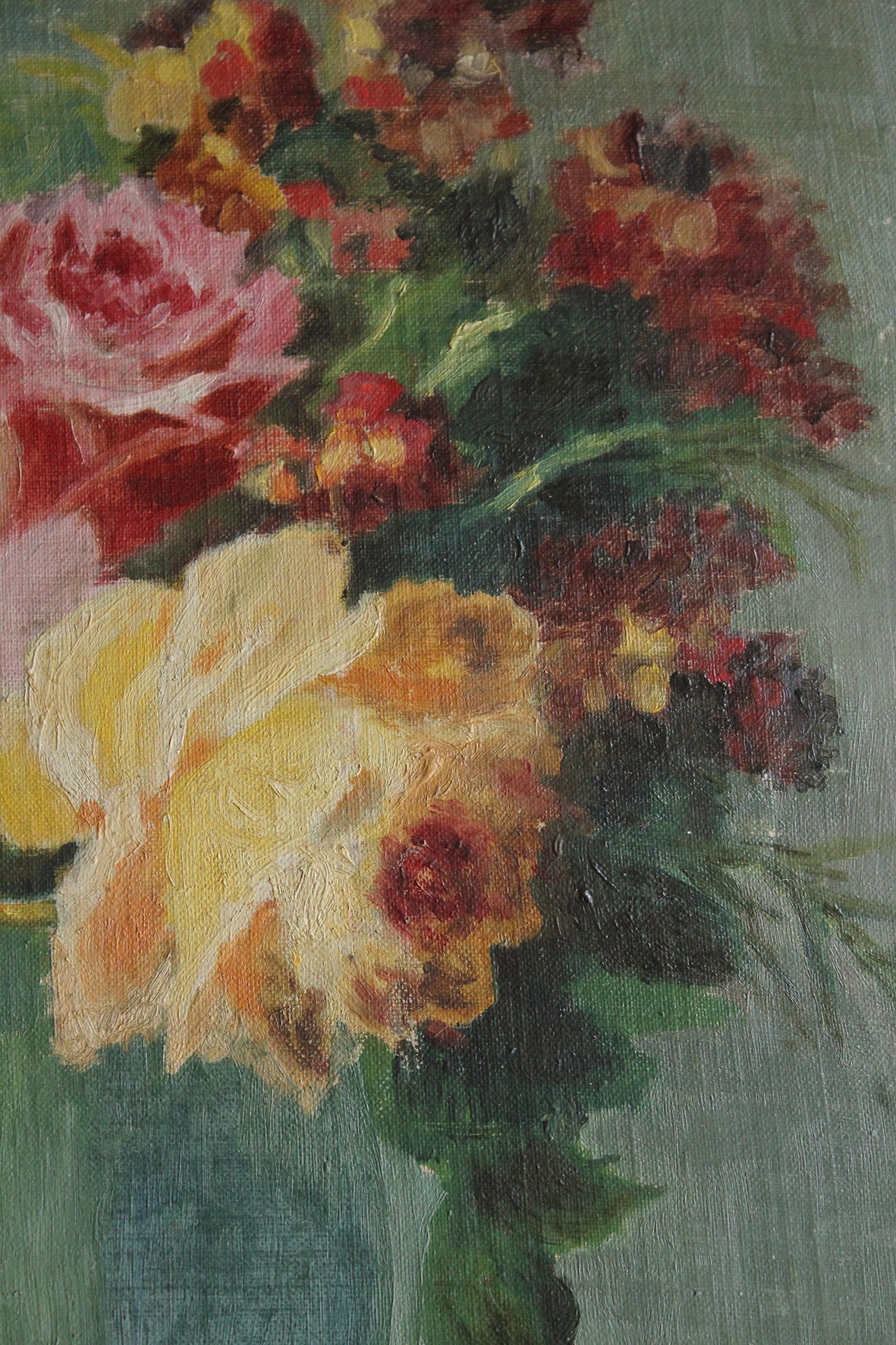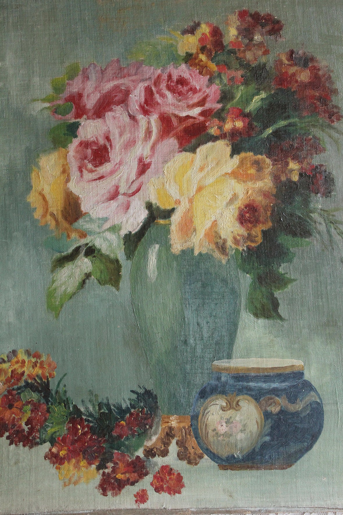 Thirties Reclaimed Floral Oil Painting - Roses & Still Life