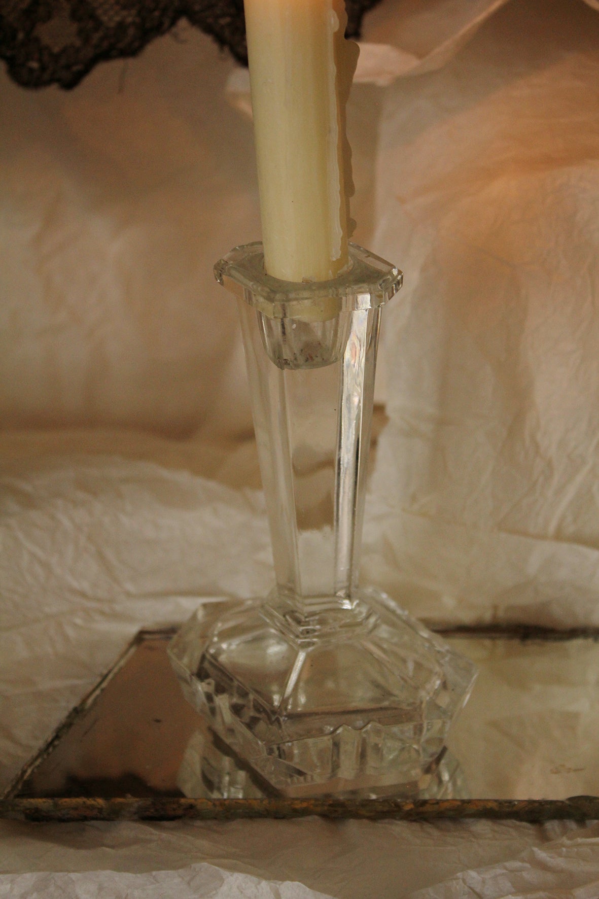 Vanity Glass Candlestick & Candle