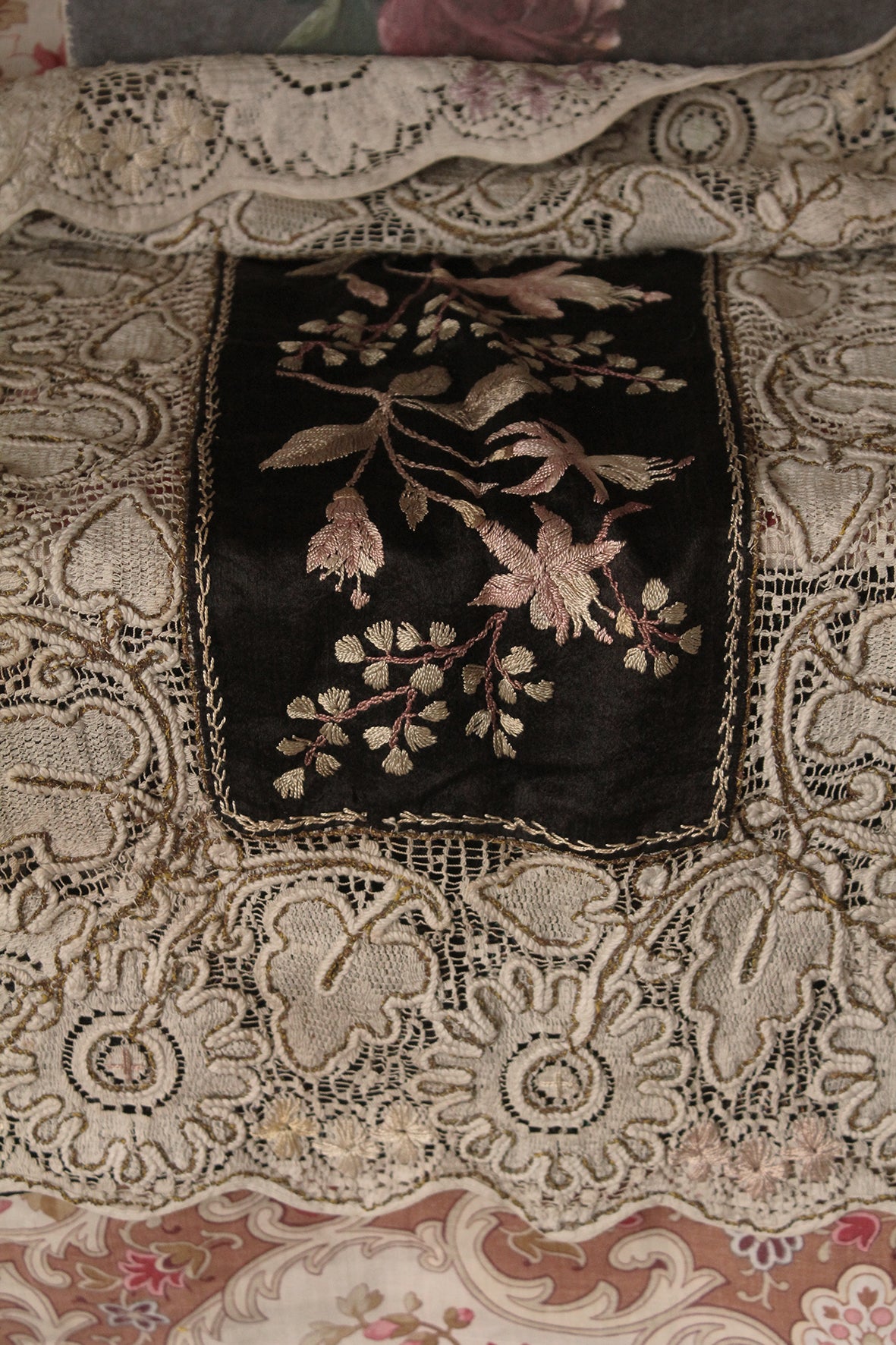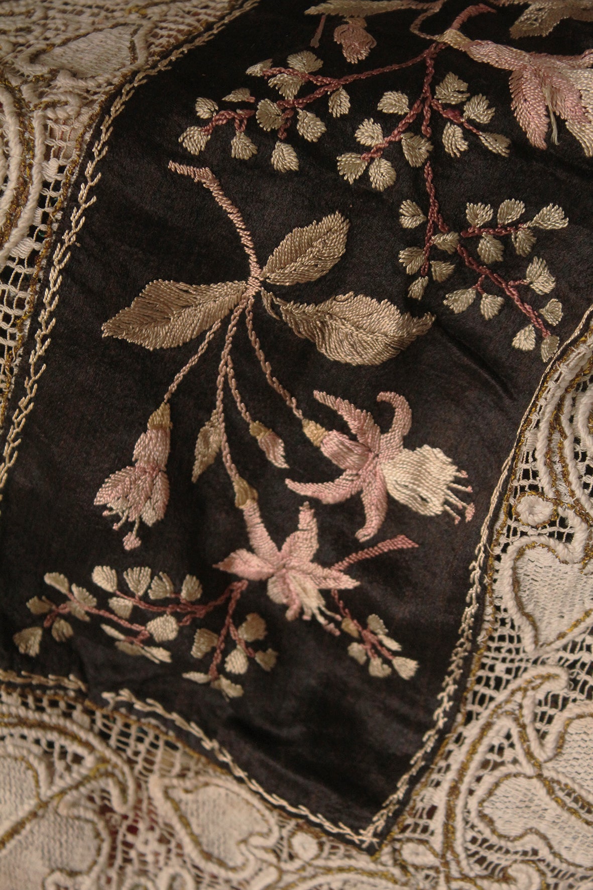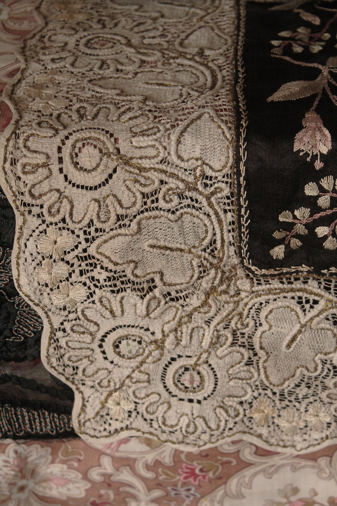 Victorian Hand Embroidery and Lace Panel