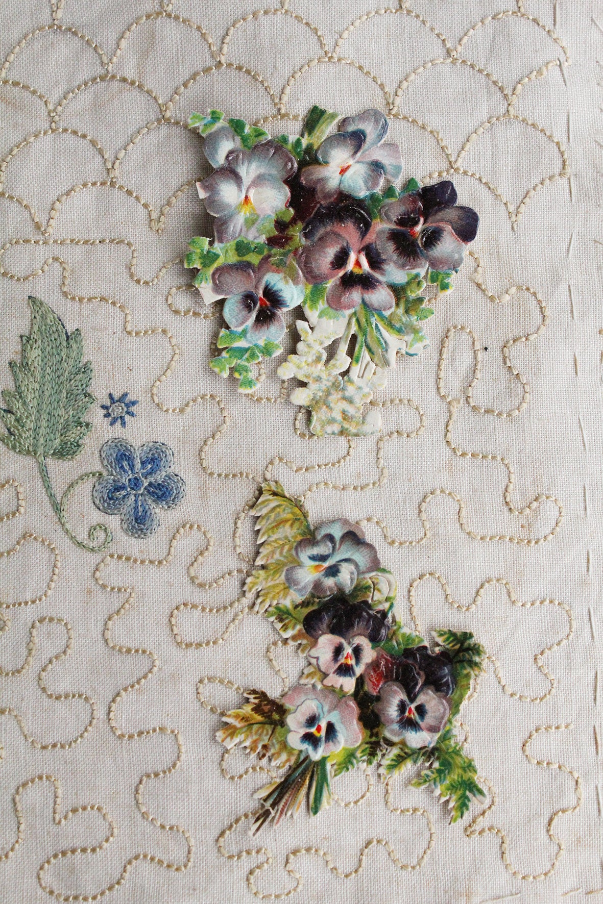 A lovely collection of embossed Victorian decoupage papers in viola designs.