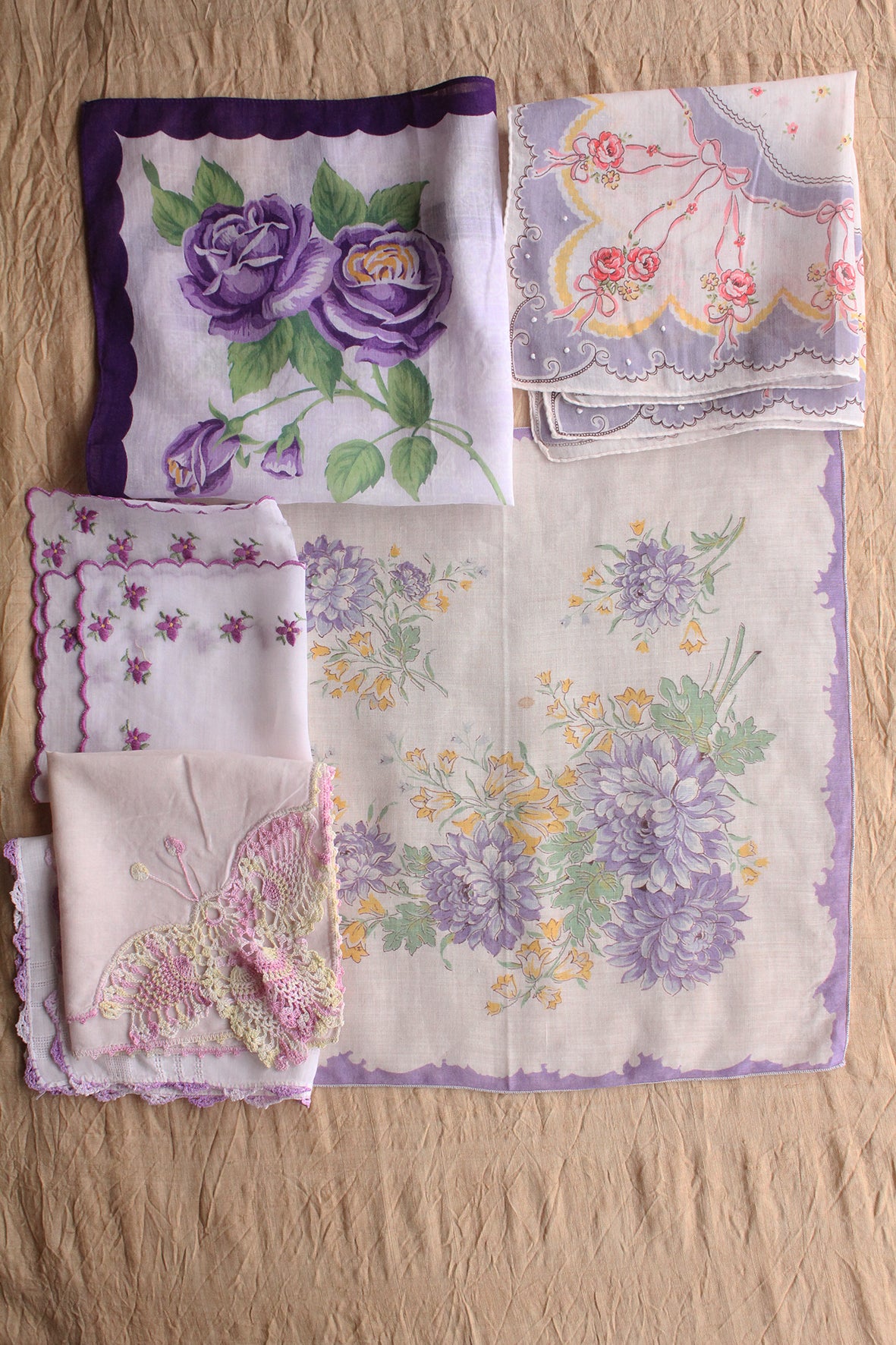 Vintage handkerchiefs are so good to use in all kinds of small projects. You may choose to purchase a couple and make some bunting for your garden. You may choose to iron paper backed bona web to the reverse (this stops from fraying and allows you to adhere to fabric and wood with an iron) and cut out the flowers to adorn your work. Many many uses.