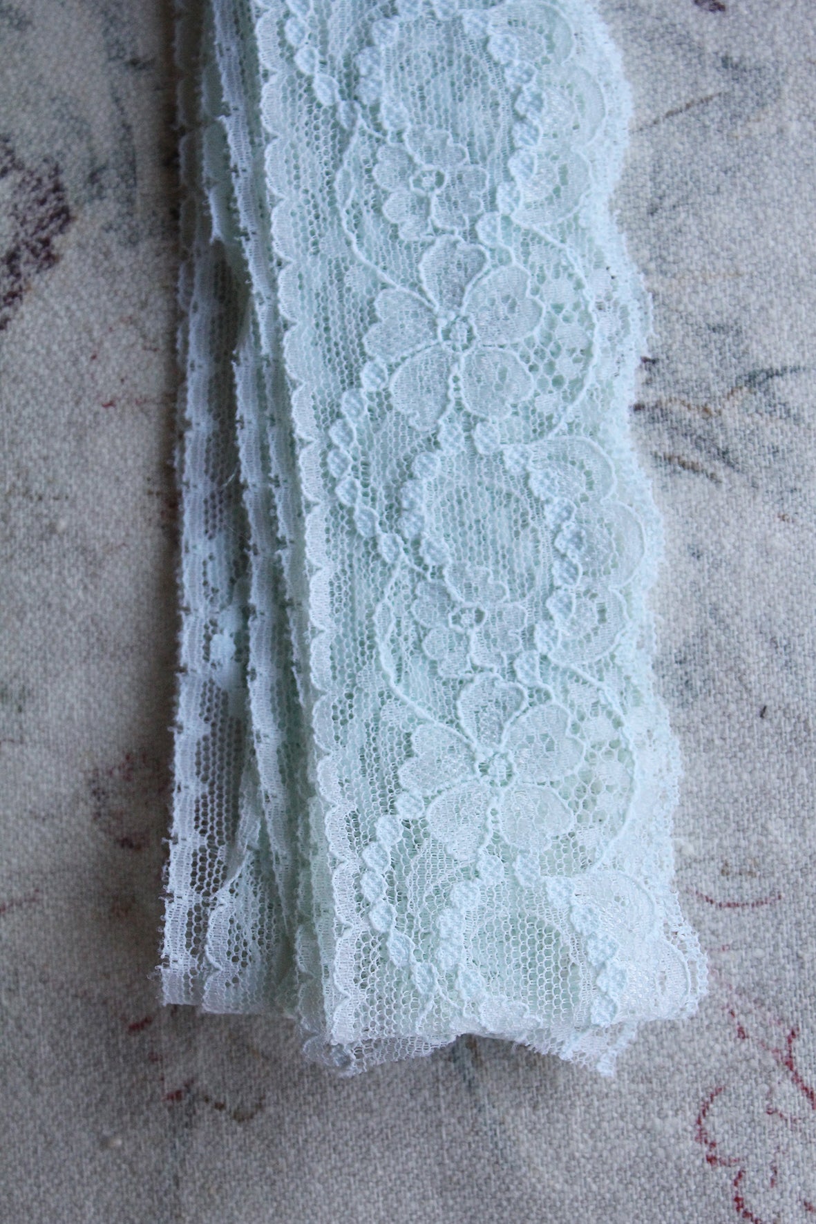 Vintage Nylon Lace Lengths - Peppermint