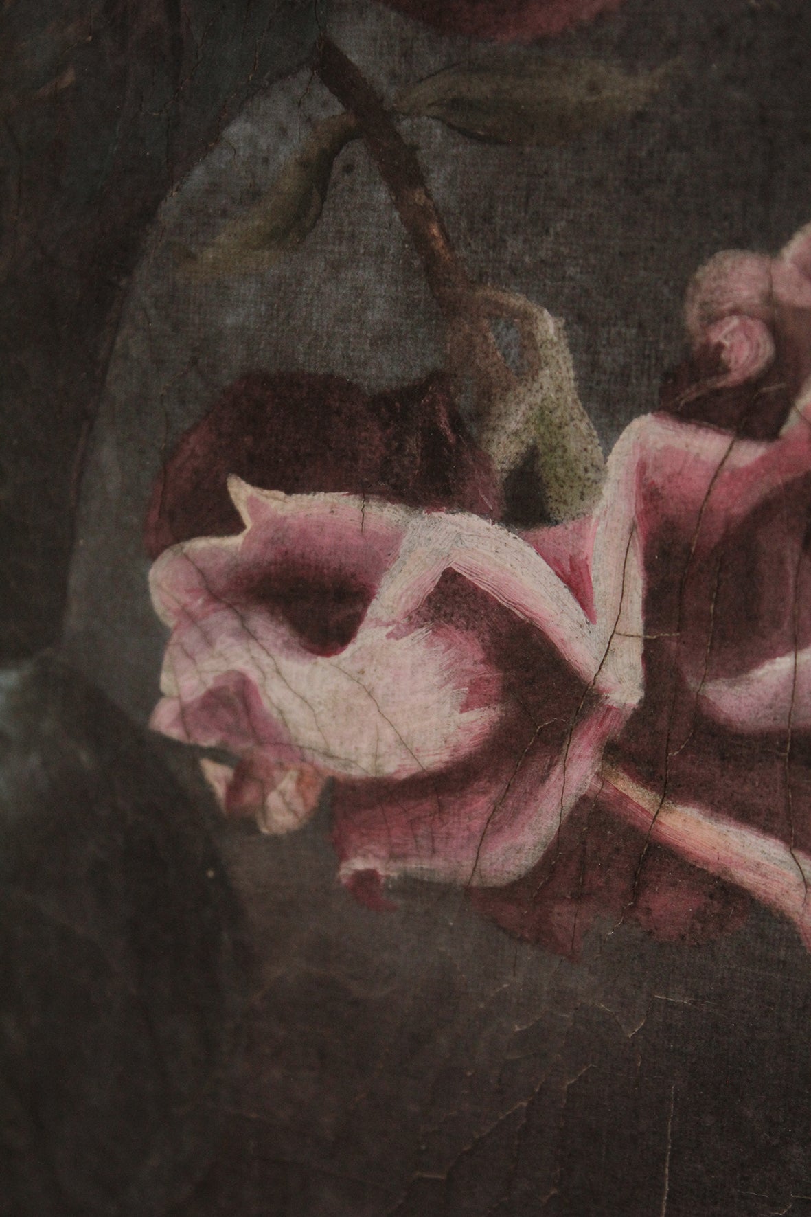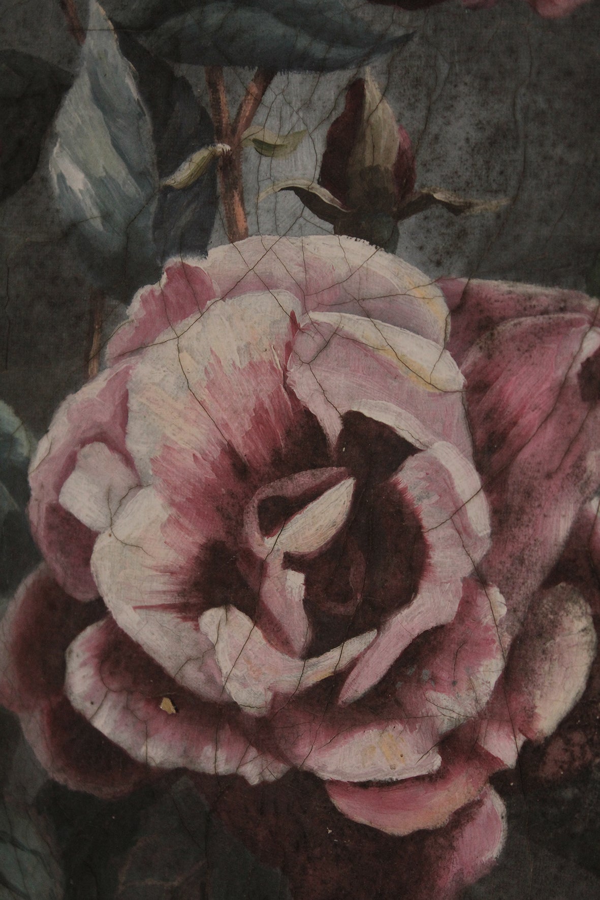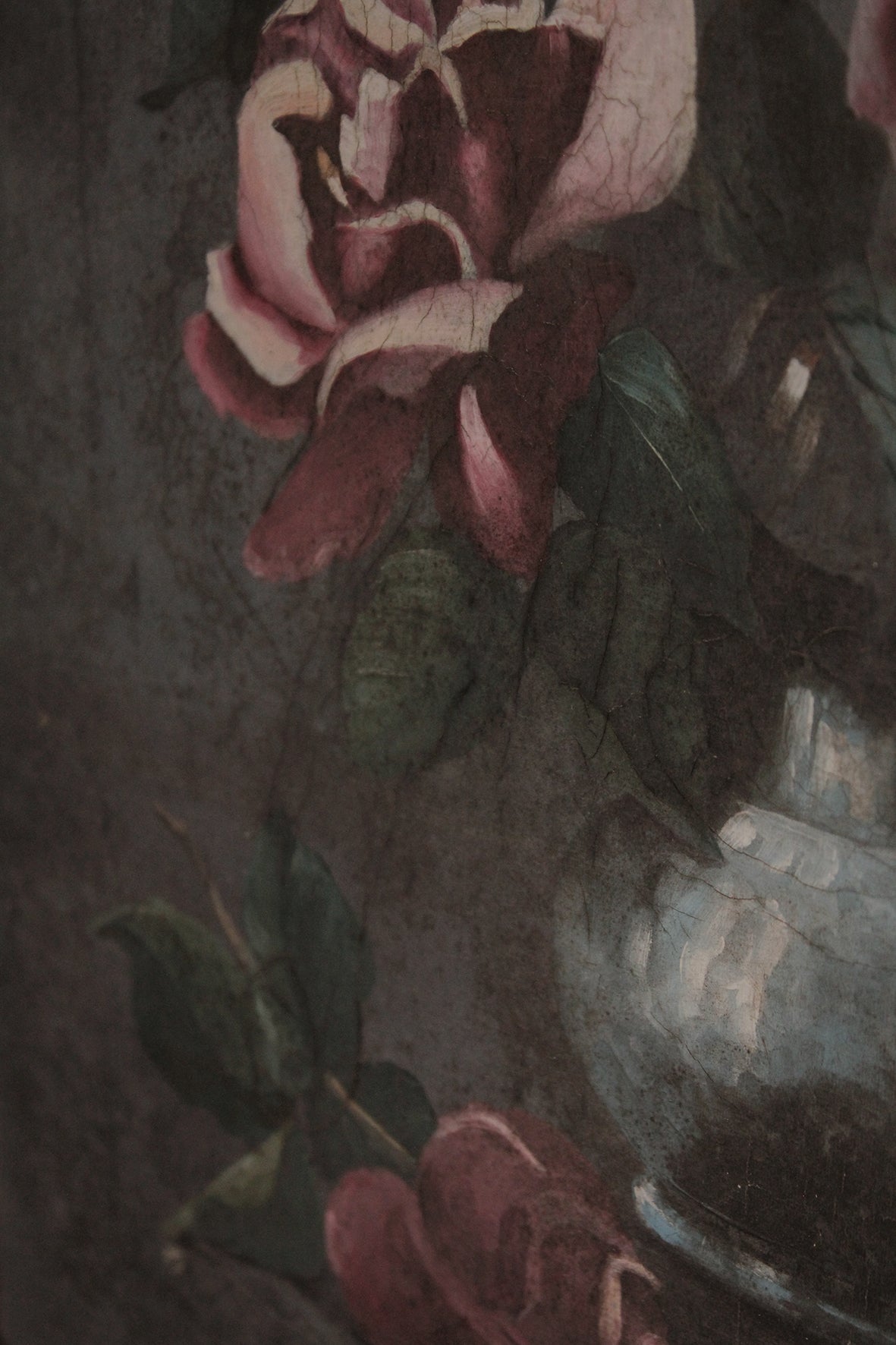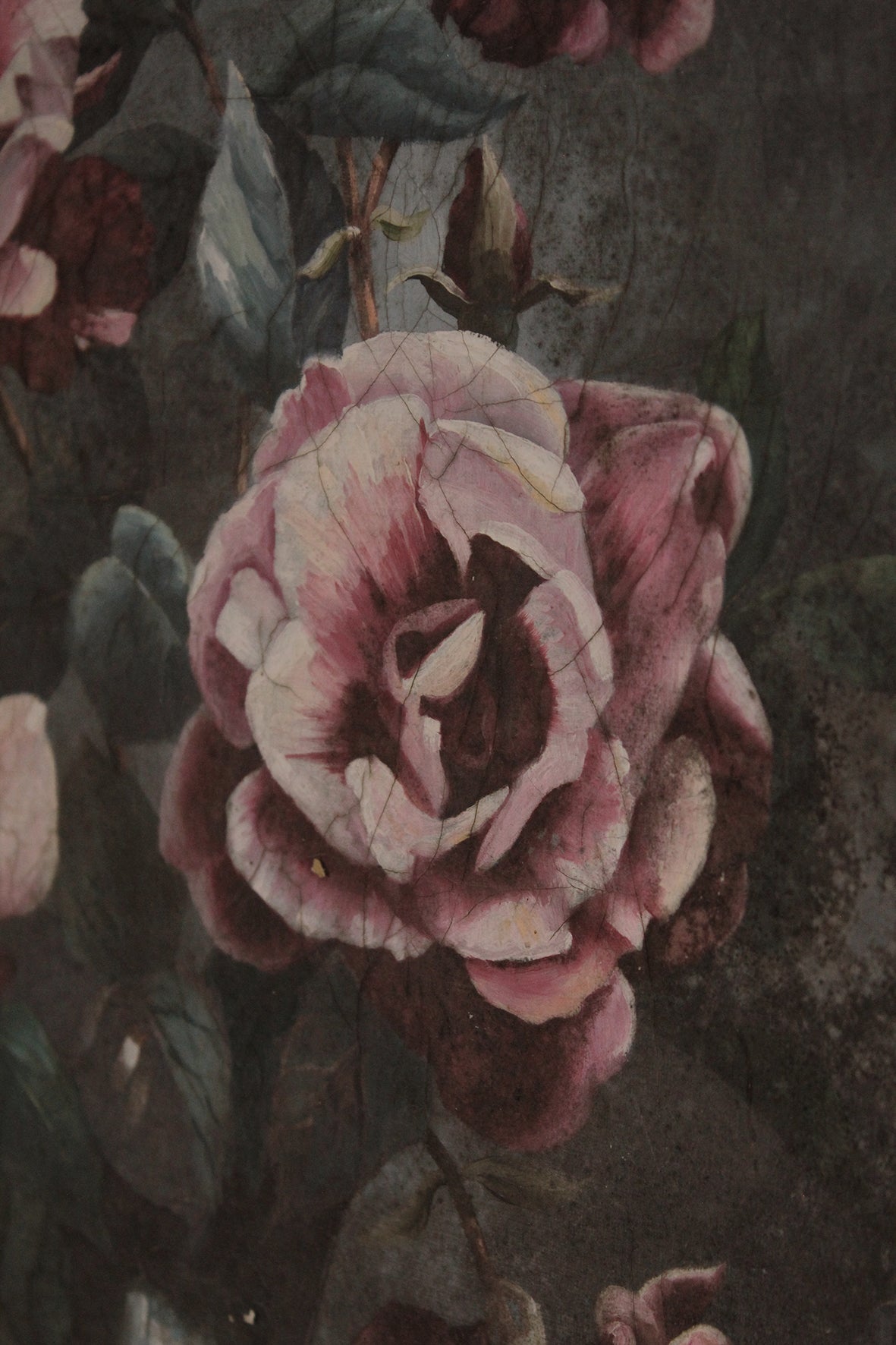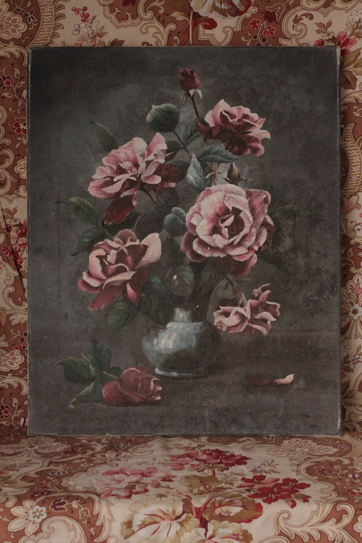 A lovely vintage floral oil painting of pink roses. It has been a delight to have this canvas stay here a while, hanging in a quiet corner of the studio.