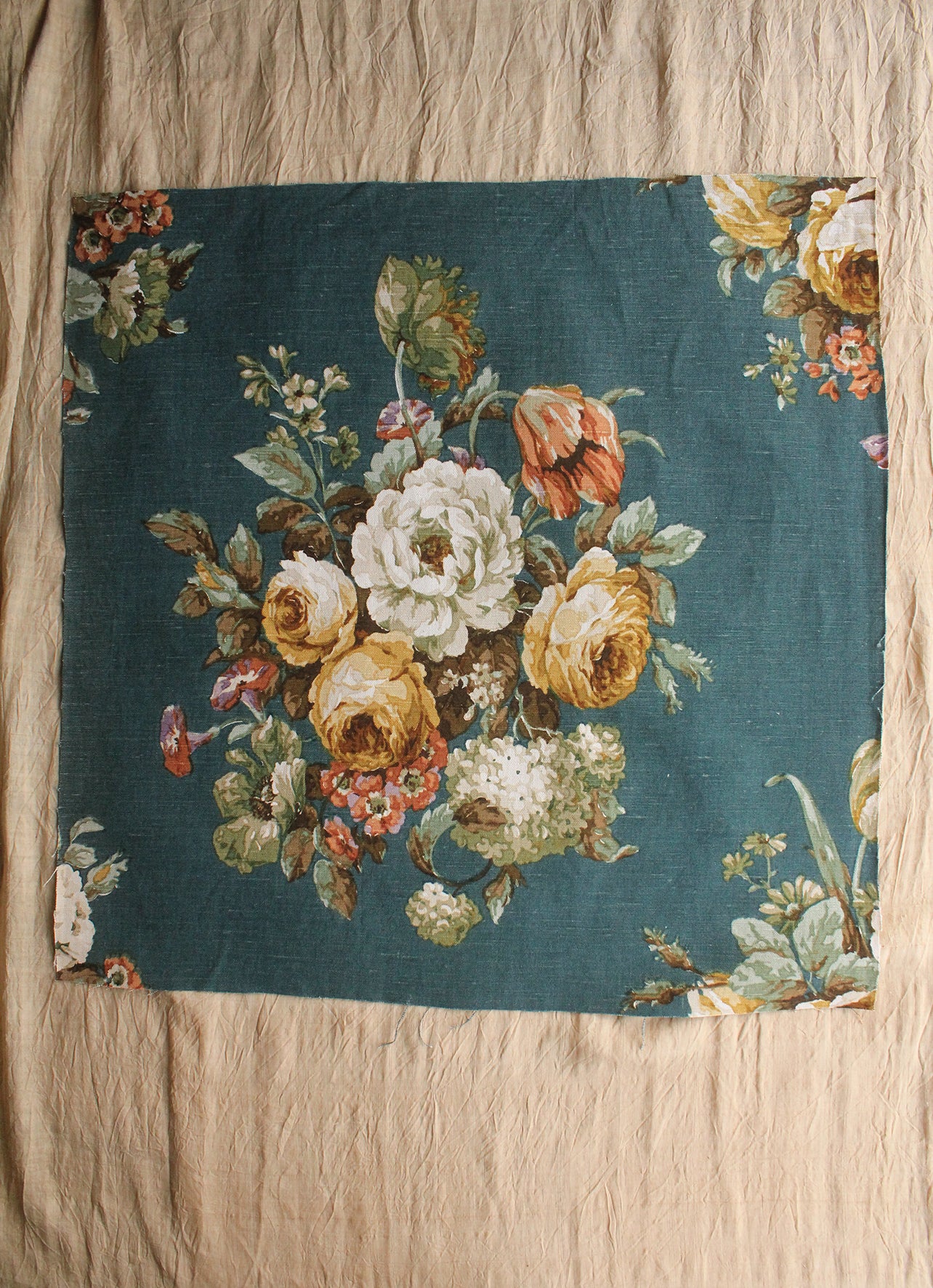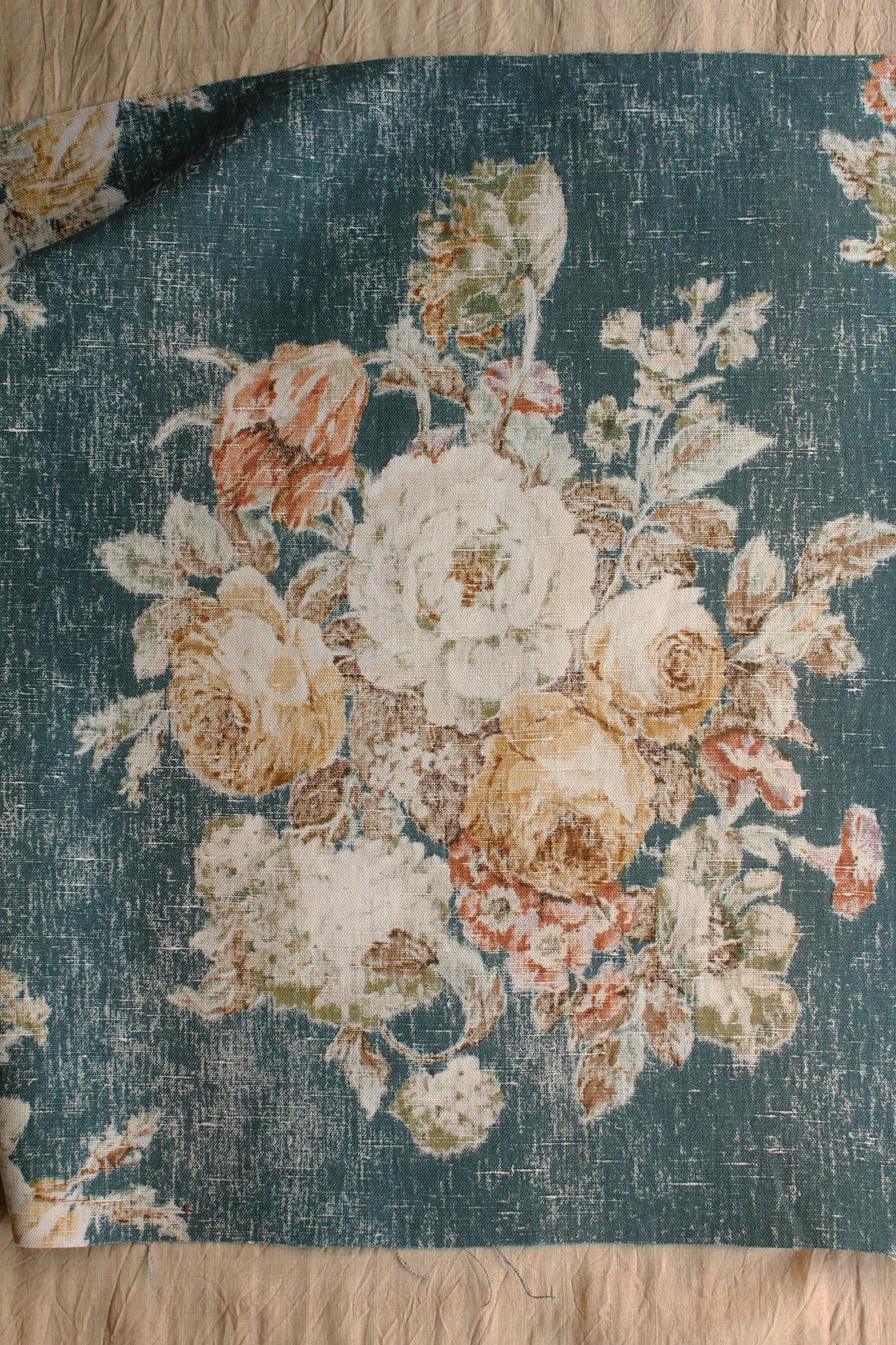 Rare Old Sanderson Linen Panel - Teal Floral